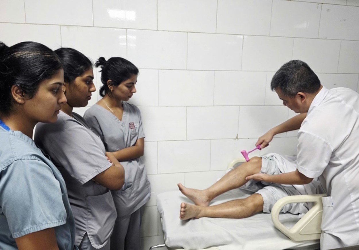 TS.BS Nguyễn Trung Nguyên - Giám đốc Trung tâm Chống độc, Bệnh viện Bạch Mai kiểm tra phản xạ của các bệnh nhân ngộ độc cá chình