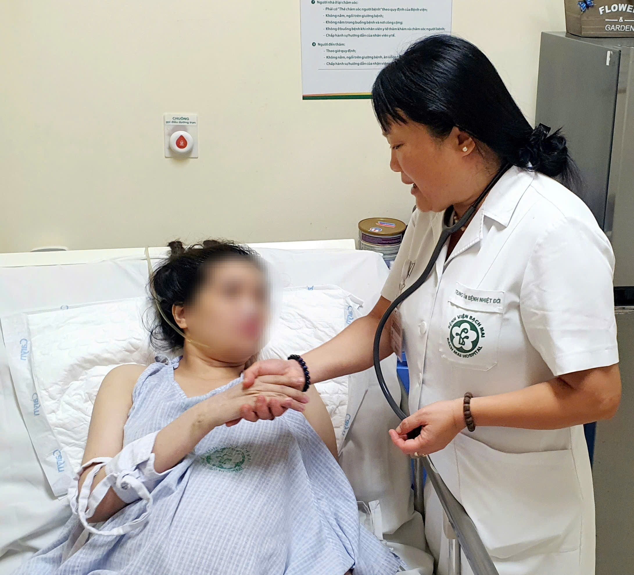Sau 5 ngày điều trị tích cực, bệnh ít thuyên giảm, sốt không dứt và đau đầu tăng dần. Ngày 7/7/2025, chị H được chuyển gấp đến Bệnh viện Bạch Mai với chẩn đoán ban đầu: Sốt không rõ nguyên nhân, thai IVF 26 tuần, rau tiền đạo.