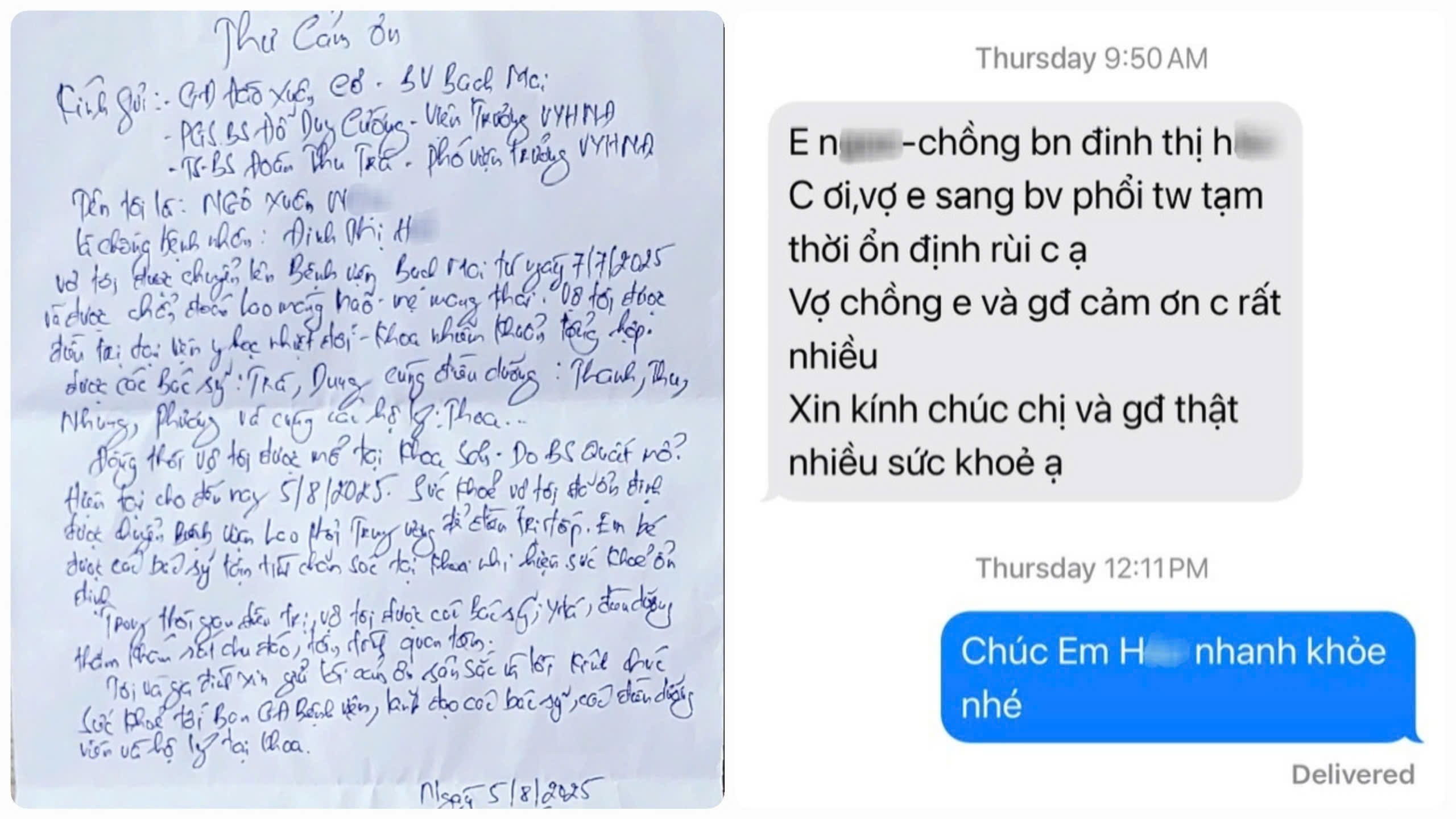 Thư và tin nhắn cảm ơn của chồng sản phụ