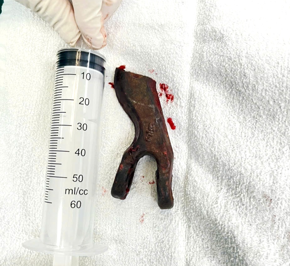 Một phần dị vật lấy ra từ hốc mắt trái người bệnh