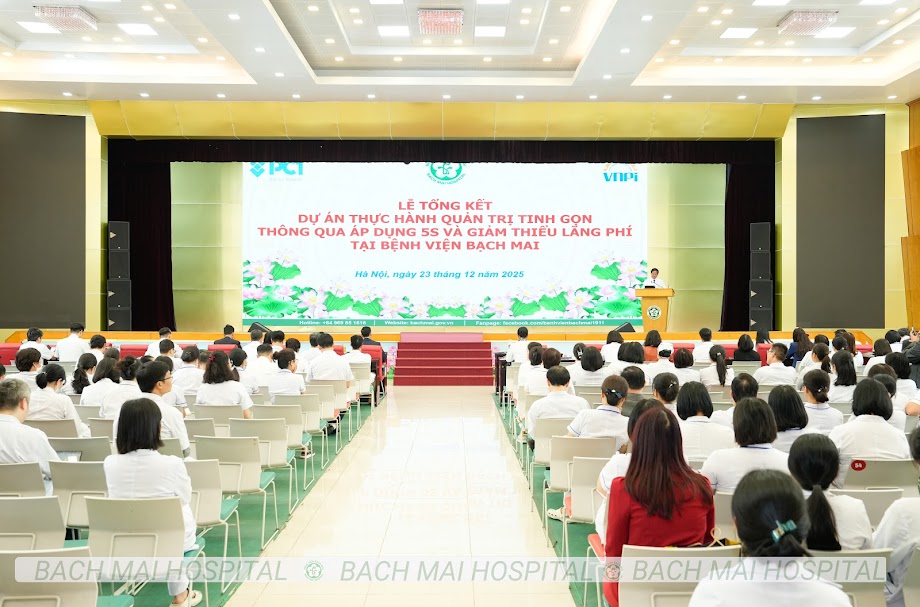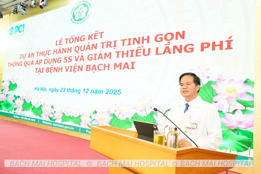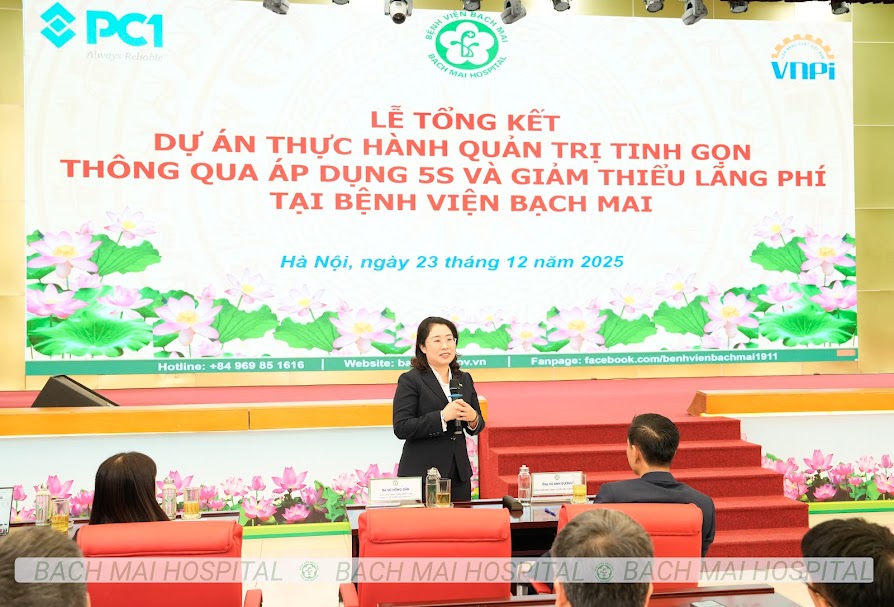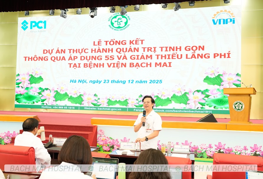Định hướng trên được PGS.TS Đào Xuân Cơ - Giám đốc Bệnh viện Bạch Mai nhấn mạnh tại Lễ tổng kết Dự án thực hành quản trị tinh gọn thông qua áp dụng 5S và giảm thiểu lãng phí tại Bệnh viện Bạch Mai diễn ra ngày 23/12/2025. Chương trình có sự tham dự của Ban Giám đốc bệnh viện; đại diện đơn vị đồng hành - Tập đoàn PC1; các giảng viên, chuyên gia Viện Năng suất Việt Nam, trong đó có TS. Vũ Hồng Dân; cùng lãnh đạo nhiều khoa, phòng, trung tâm trong toàn viện.