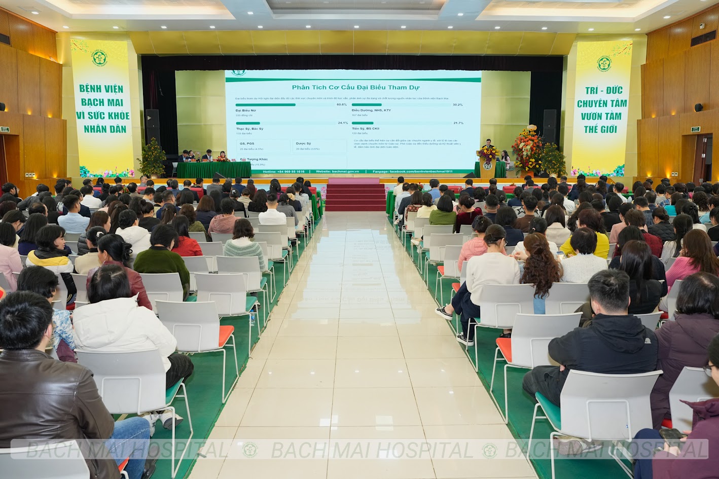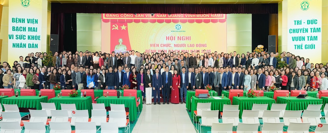 Ngày đăng: 13/02/2026Tác giả: Nguyên Hà - Thế AnhChiều 12/02/2026, trong không khí cả nước phấn khởi chào mừng thành công Đại hội Đảng toàn quốc lần thứ XIV và chuẩn bị đón Xuân mới, Bệnh viện Bạch Mai long trọng tổ chức Hội nghị viên chức, người lao động năm 2025 với sự tham dự của 553 đại biểu đại diện cho 48 đơn vị trong toàn viện. Hội nghị không chỉ là dịp tổng kết một năm đầy nỗ lực và dấu ấn, mà còn là thời điểm xác lập phương hướng, mục tiêu và khát vọng phát triển cho chặng đường phía trước.
