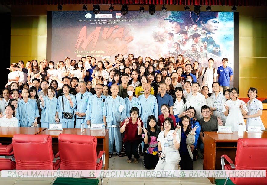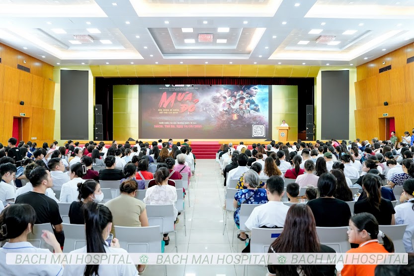 Ngày đăng: 15/10/2025Tác giả: Đỗ Hằng - Thành DươngChiều 14/10/2025, sau giờ làm việc, Bệnh viện Bạch Mai tổ chức một sự kiện đặc biệt mang đậm tính nhân văn và truyền thống tại Hội trường Quốc tế A11 và Hội trường Lớn, Nhà P. Gần 1.000 cán bộ, nhân viên cùng các bác cựu chiến binh đang điều trị nội trú tại bệnh viện đã cùng nhau xem bộ phim lịch sử “Mưa Đỏ” của Điện ảnh Quân đội Nhân dân.