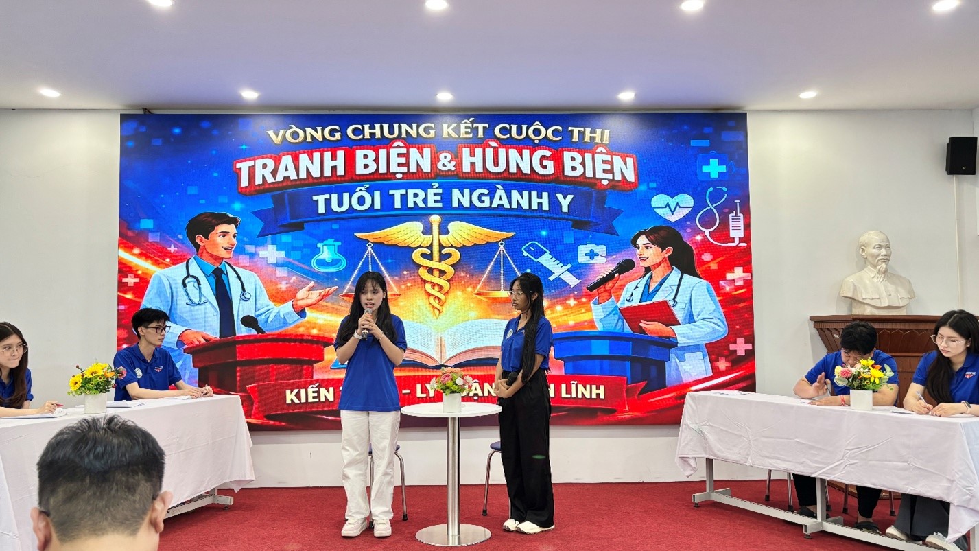 Điểm nhấn của chương trình là vòng chung kết Hội thi tranh biện, hùng biện “Tuổi trẻ ngành Y”. Từ vòng sơ loại, Ban Giám khảo lựa chọn 6 thí sinh xuất sắc vào chung kết, chia thành hai đội ủng hộ và phản đối để tranh biện các vấn đề thực tiễn của ngành y tế. Với phong thái tự tin, lập luận chặt chẽ, tư duy sắc bén và góc nhìn đa chiều, các thí sinh đã mang đến những phần thi kịch tính, giàu tính học thuật, nhận được sự cổ vũ sôi nổi của khán giả.