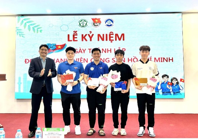 Phát biểu tại buổi lễ, ThS.BS Vũ Trí Tiến - Phó Hiệu trưởng Nhà trường gửi lời chúc mừng tới toàn thể đoàn viên, thanh niên. Ông nhấn mạnh vai trò xung kích, sáng tạo của tuổi trẻ trong thời đại mới, nhất là trong lĩnh vực y tế - nơi đòi hỏi không chỉ chuyên môn vững vàng mà còn cần y đức, tinh thần trách nhiệm và sự tận tâm với người bệnh. Những chia sẻ đã tiếp thêm động lực, truyền cảm hứng mạnh mẽ tới đoàn viên, sinh viên.