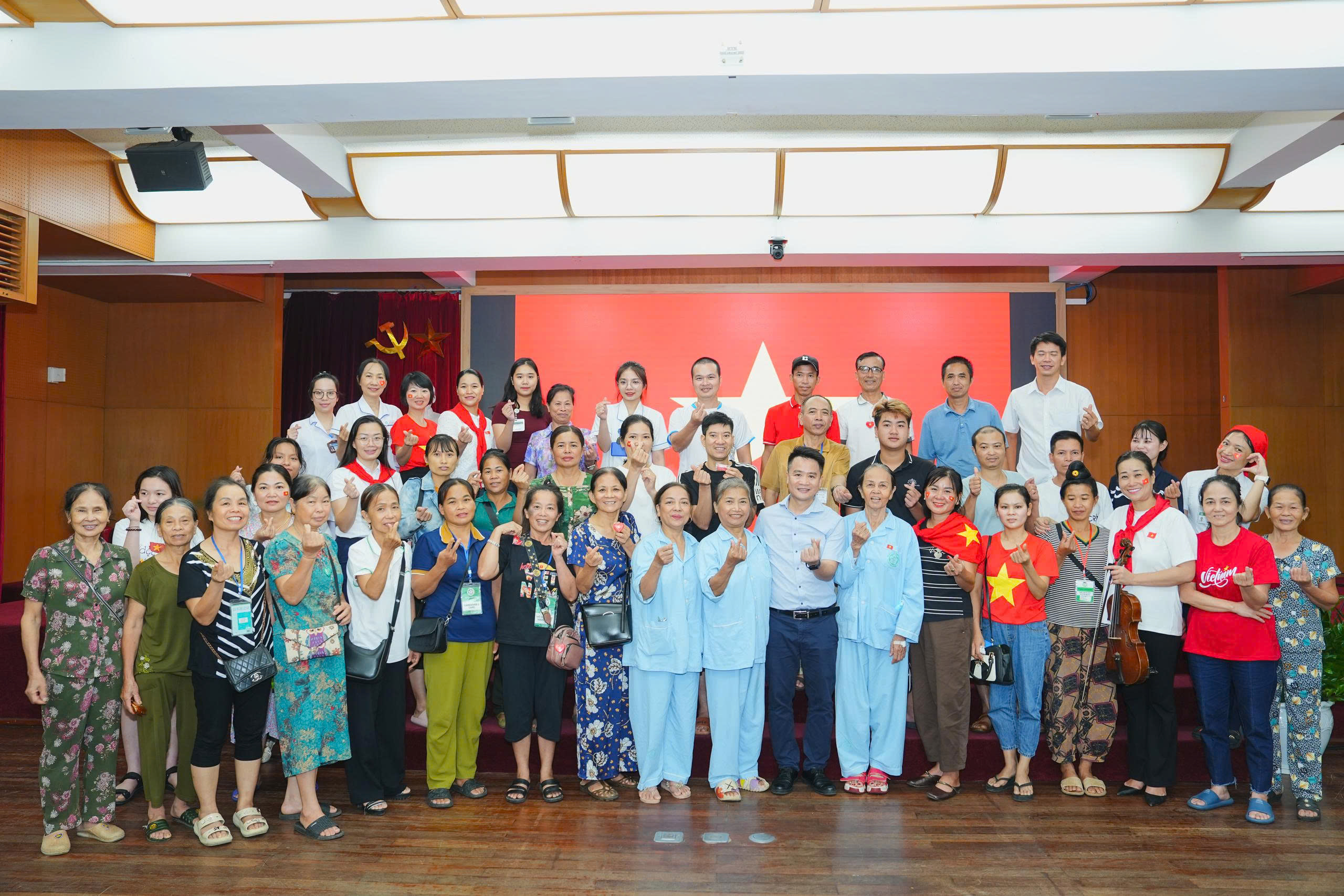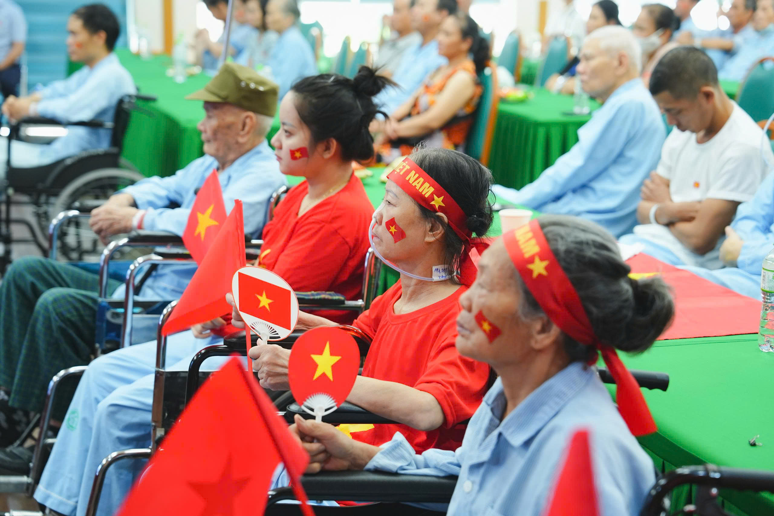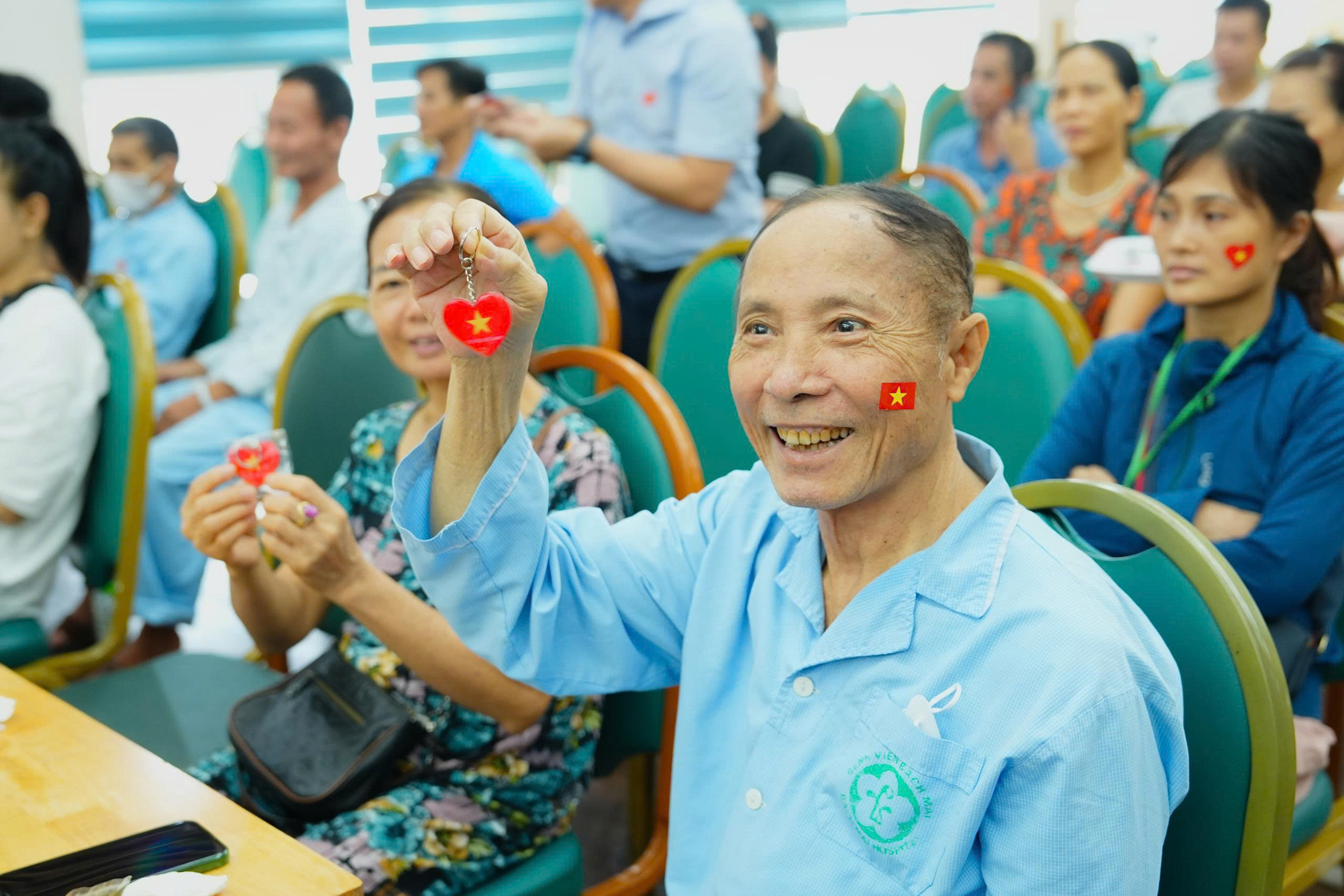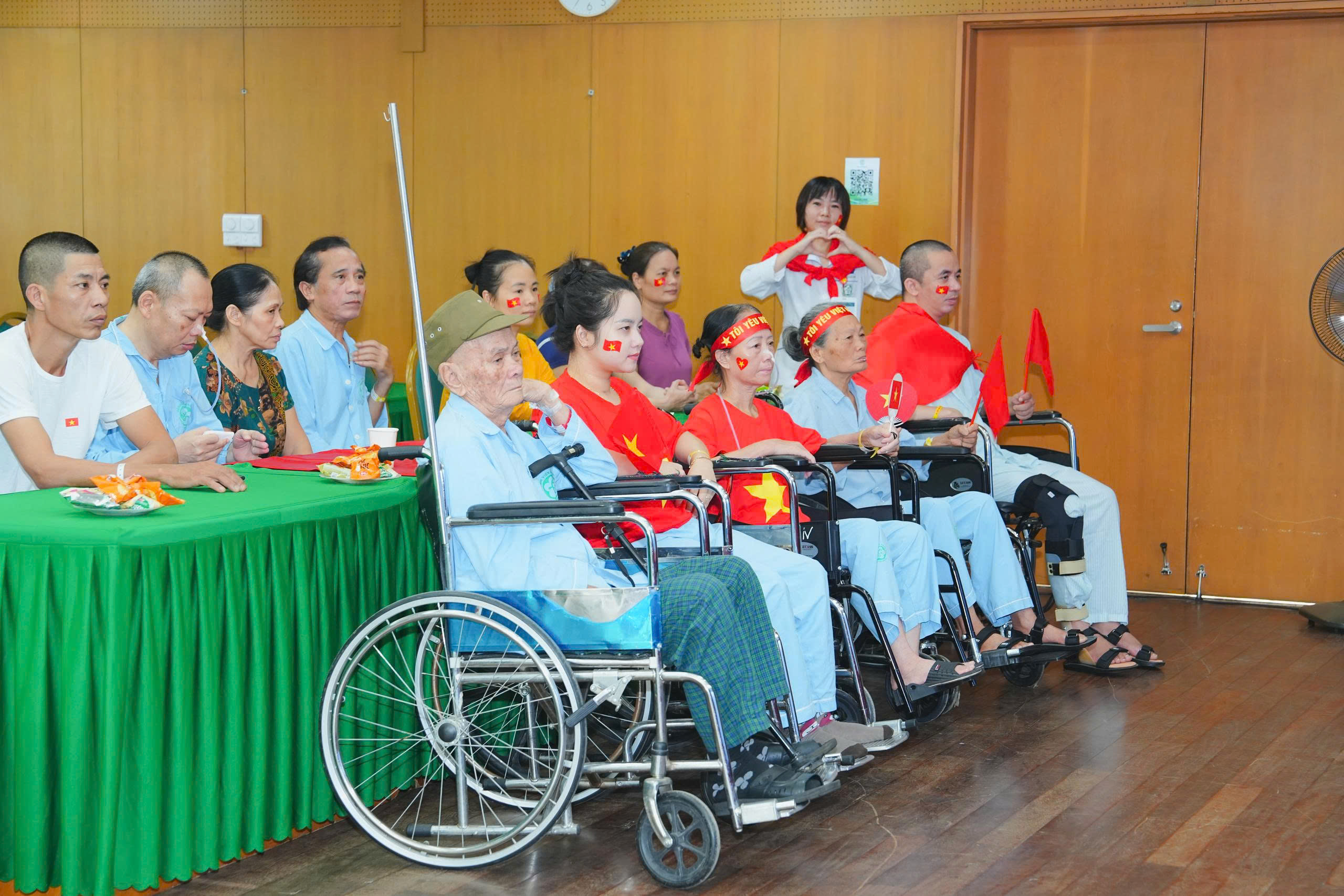 Không gian xem được bố trí khoa học với những chiếc ghế được xếp ngay ngắn, tạo nên một môi trường an toàn, thoải mái nhưng vẫn trang trọng. Đặc biệt, những người bệnh là cựu chiến binh, thương bệnh binh, gia đình cách mạng và những bệnh nhân ngồi xe lăn… đã được bố trí những vị trí trang trọng nhất, thể hiện sự tri ân sâu sắc của bệnh viện đối với những đóng góp của họ cho đất nước.
