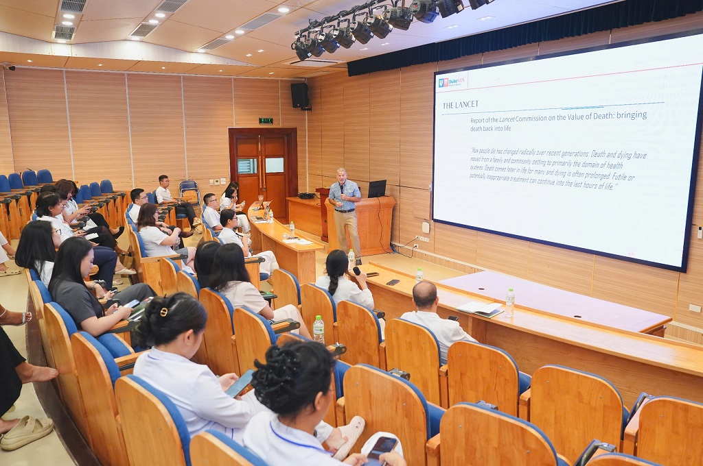 Chuyên gia quốc tế cũng giới thiệu Khung đánh giá chất lượng chăm sóc bệnh nhân giai đoạn cuối (QCPAI), được triển khai tại Singapore và Philippines, với trọng tâm là đo lường trải nghiệm của gia đình và bệnh nhân trong quá trình điều trị. Từ đó, GS. Eric Andrew Finkelstein nhấn mạnh: Chăm sóc giảm nhẹ cần chuyển từ “chữa bệnh bằng mọi giá” sang ưu tiên giảm đau, hỗ trợ tinh thần, tôn trọng giá trị và nguyện vọng của người bệnh.