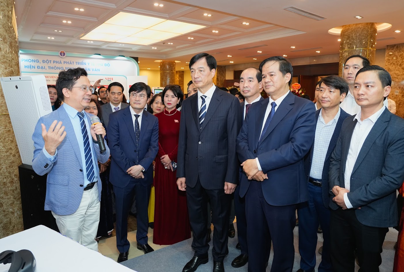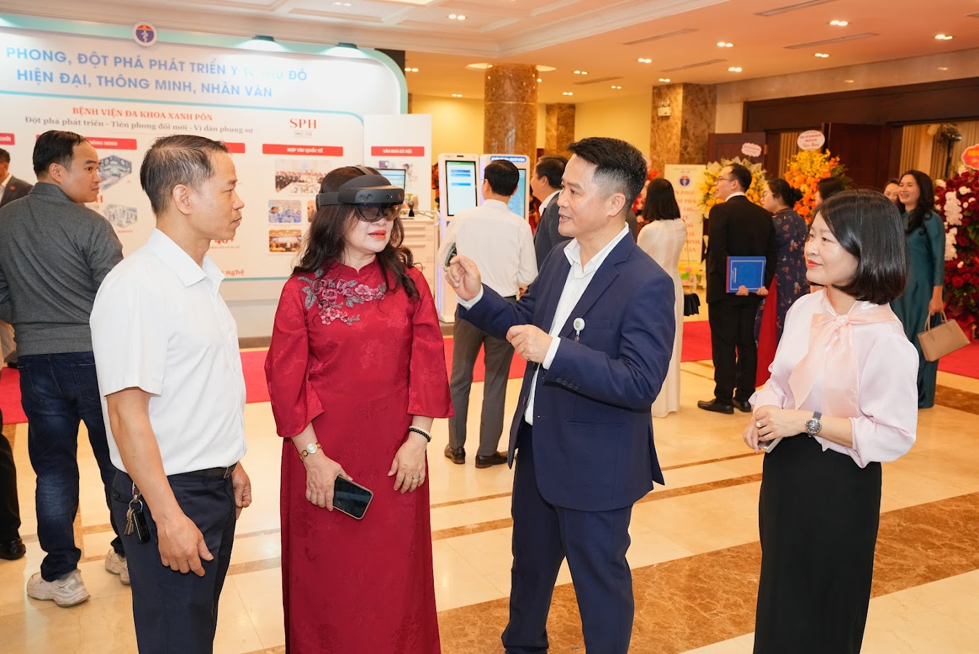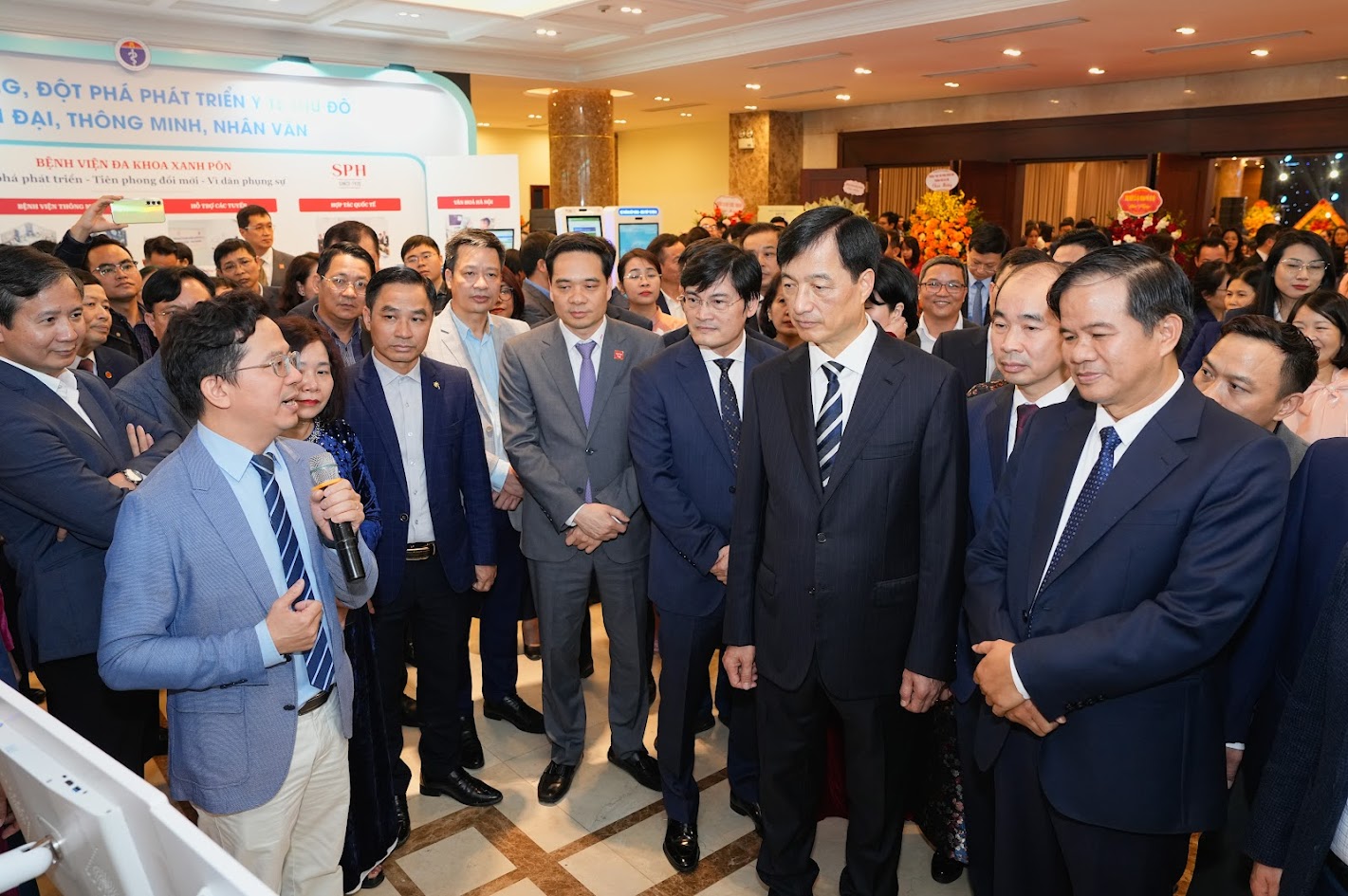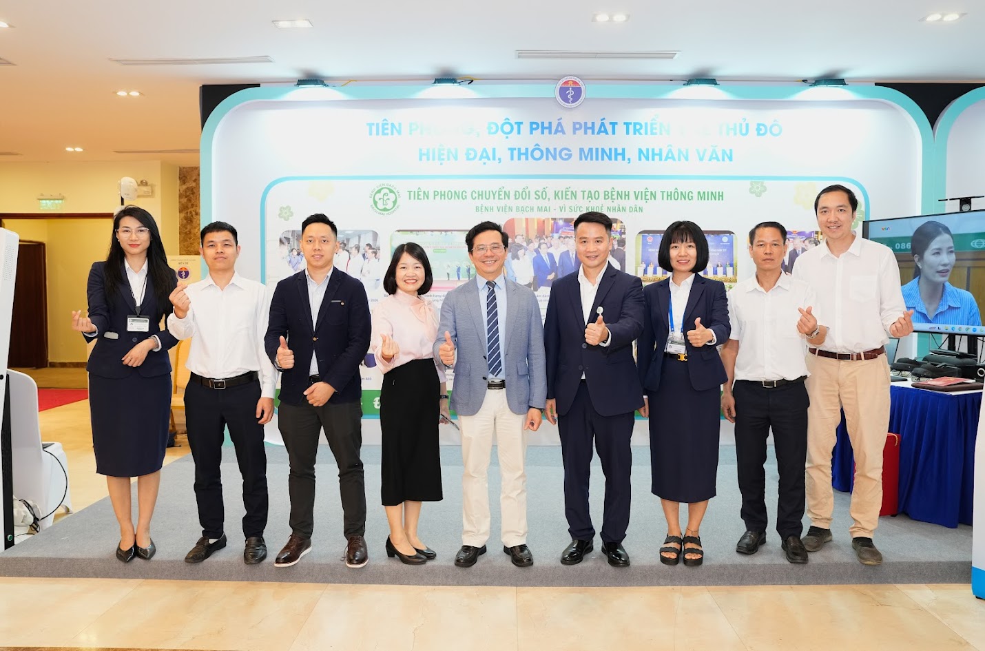 Tại triển lãm, các đại biểu đã được giới thiệu những thành tựu nổi bật của Bệnh viện trong chuyển đổi số và ứng dụng công nghệ cao vào thực tiễn khám chữa bệnh. Đại diện lãnh đạo Bệnh viện, PGS.TS Đào Xuân Cơ - Giám đốc Bệnh viện và PGS.TS Vũ Văn Giáp - Phó Giám đốc Bệnh viện đã trực tiếp giới thiệu với đồng chí Nguyễn Duy Ngọc, Ủy viên Bộ Chính trị, Bí thư Thành ủy Hà Nội và các đại biểu về các giải pháp công nghệ tiêu biểu đang được triển khai tại Bệnh viện Bạch Mai.