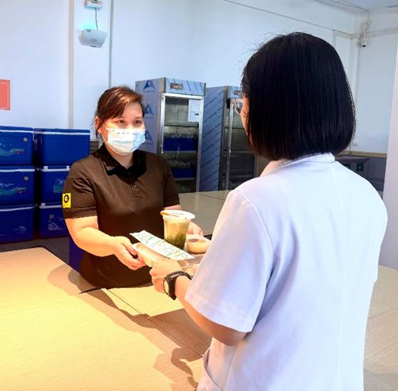 Ảnh 3: Hình ảnh Nhân viên khoa Dinh dưỡng đang giám sát giao suất ăn cho Người nhà và Nhân viên y tế.