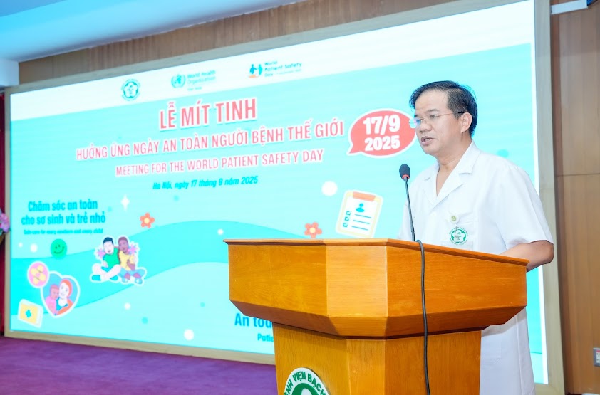 Ngày đăng: 17/09/2025Tác giả: Đỗ Hằng - Thế AnhChiều ngày 17/9/2025, trong không khí trang trọng và ý nghĩa, Bệnh viện Bạch Mai đã long trọng tổ chức Lễ mít-tinh hưởng ứng Ngày An toàn người bệnh Thế giới. Sự kiện không chỉ là một hoạt động thường niên mà còn là một lời khẳng định mạnh mẽ về sứ mệnh và trách nhiệm của toàn thể đội ngũ y bác sĩ, nhân viên y tế trong việc đặt sự an toàn của người bệnh lên hàng đầu, đặc biệt với chủ đề năm nay: “Chăm sóc an toàn cho trẻ sơ sinh và trẻ nhỏ”.