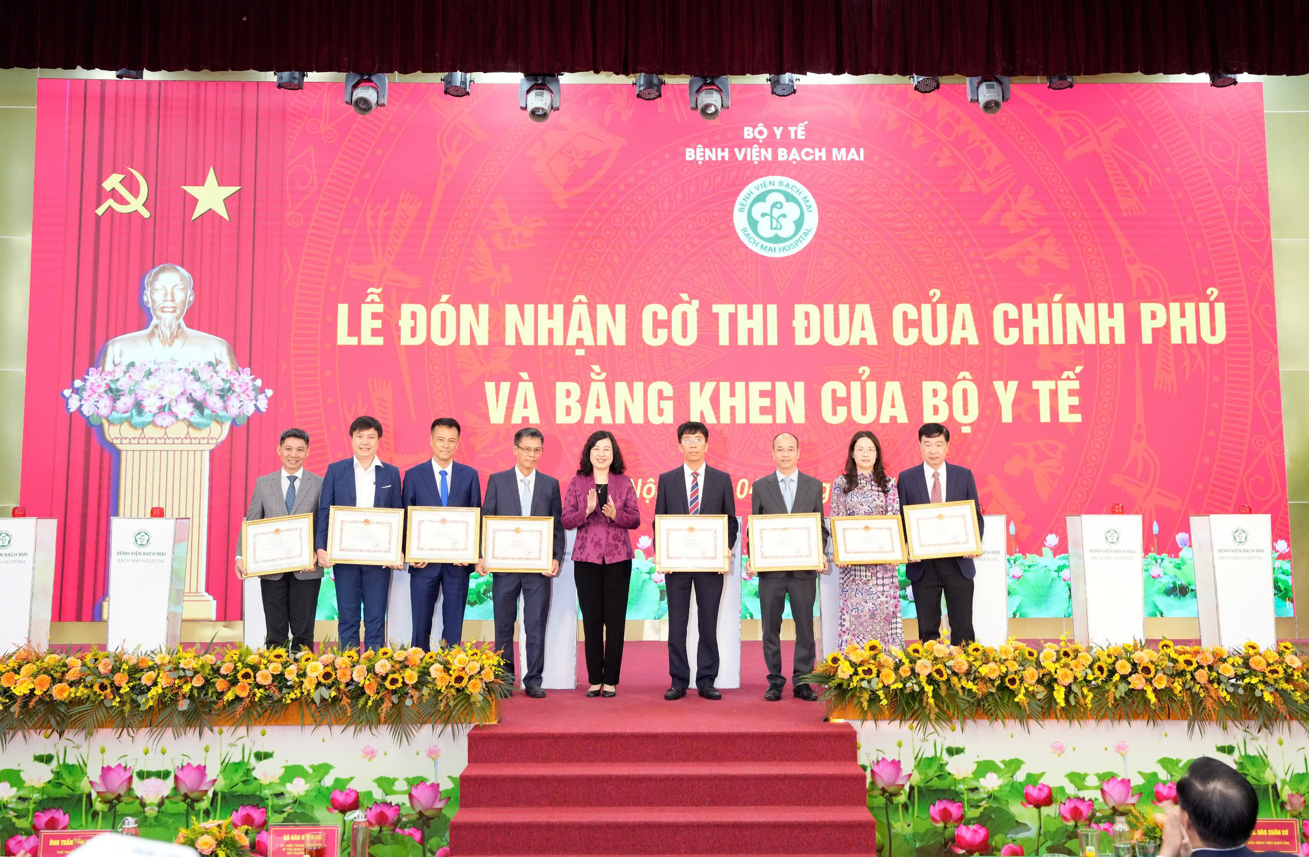 Lãnh đạo Bệnh viện Bạch Mai đón nhận Cờ thi đua của Chính phủ