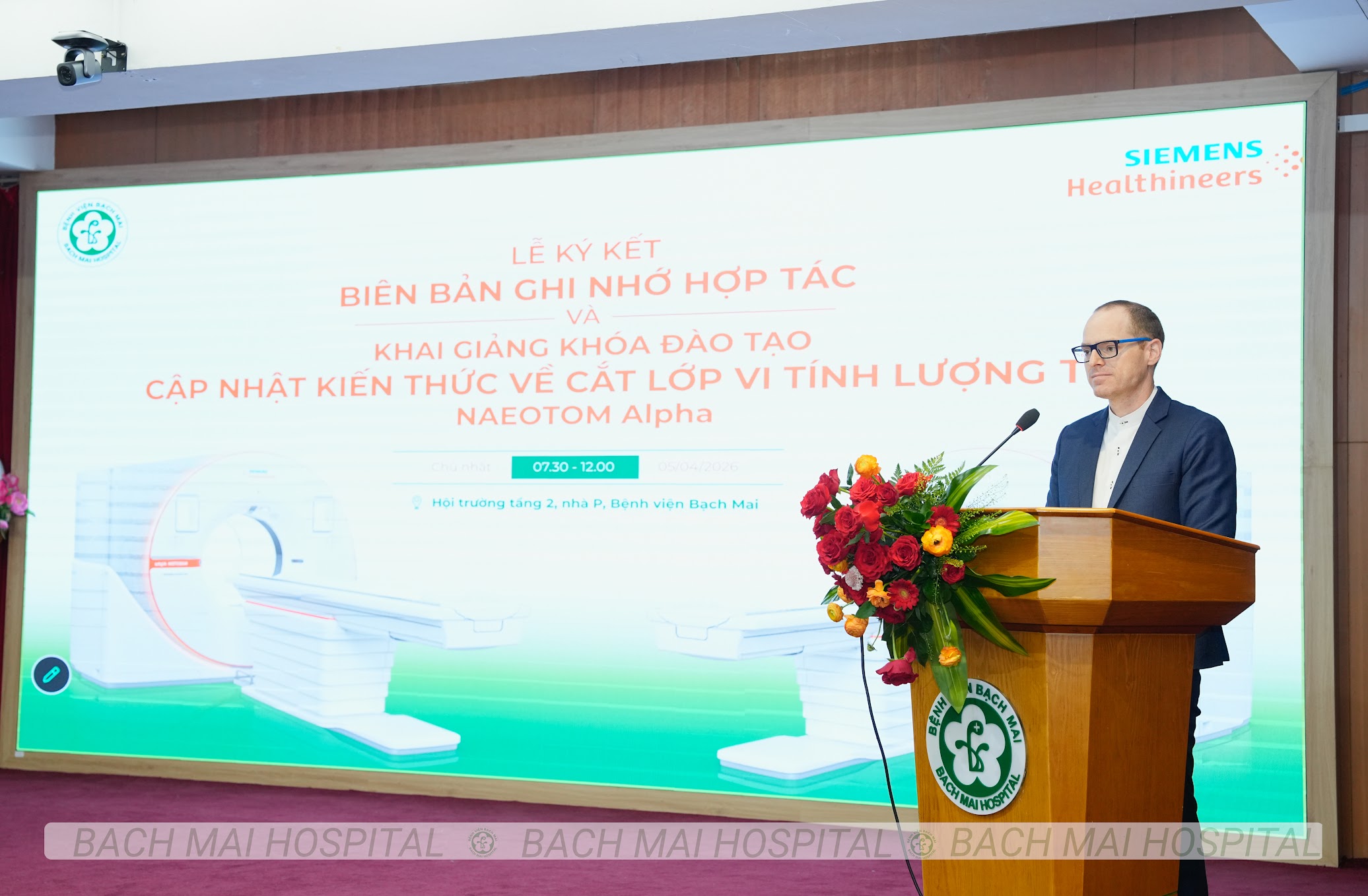 Ông Fabian Martin Singer - Giám đốc Điều hành Siemens Healthineers Việt Nam chia sẻ: “Chúng tôi không chỉ đưa máy móc vào phòng chụp. Việc đồng hành cùng Bạch Mai là để xây dựng năng lực chuyên môn, thúc đẩy nghiên cứu khoa học. Bạch Mai sẽ không chỉ là nơi khám bệnh, mà còn là Trung tâm tham chiếu hàng đầu khu vực – nơi các bác sĩ trong và ngoài nước đến học hỏi và chia sẻ kinh nghiệm.”
