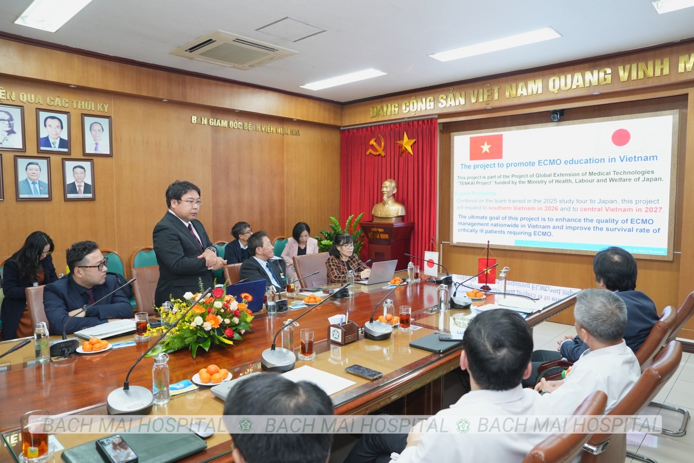 Dự án ECMO là điểm nhấn mới, chính thức bước vào năm triển khai đầu tiên, trong bối cảnh Bệnh viện Bạch Mai đã có gần 15 năm kinh nghiệm làm chủ kỹ thuật này. Điểm khác biệt của dự án là cách tiếp cận đa ngành, với sự tham gia đồng bộ của bác sĩ, điều dưỡng, kỹ sư lâm sàng và dược sĩ. Thực tiễn quốc tế cho thấy, mô hình đội ECMO đa ngành có thể giúp nâng tỷ lệ sống sót của người bệnh từ dưới 40% lên trên 50%. Trên cơ sở đó, JIHS đã hỗ trợ đào tạo mô phỏng, huấn luyện giảng viên nòng cốt và cử các đoàn cán bộ của Bệnh viện Bạch Mai sang Nhật Bản tập huấn chuyên sâu, tạo tiền đề để mở rộng đào tạo ECMO cho các bệnh viện khu vực trong giai đoạn 2026-2027.