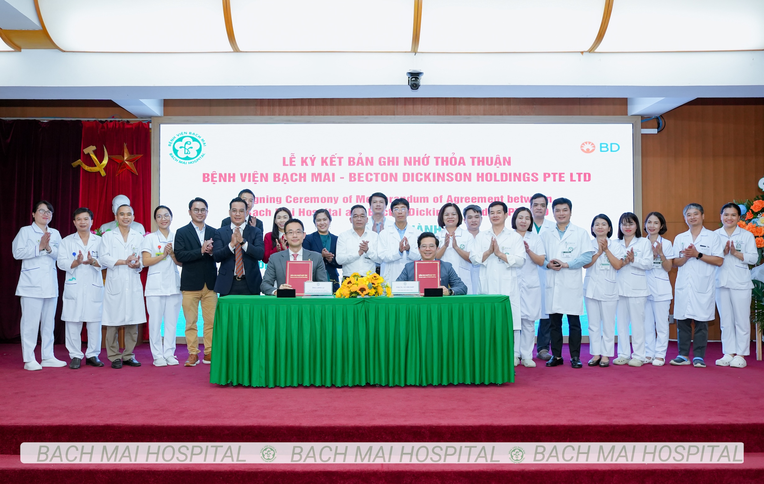 Ngày đăng: 10/11/2025Tác giả: Diệu Hiền - Thành DươngNgày 10/11, Bệnh viện Bạch Mai - Bệnh viện đa khoa hàng đầu Việt Nam chính thức ký kết Bản ghi nhớ hợp tác chiến lược (MOA) với Công ty Becton Dickinson Holdings PTE LTD (BD) - Tập đoàn công nghệ y tế toàn cầu với hơn 125 năm kinh nghiệm.