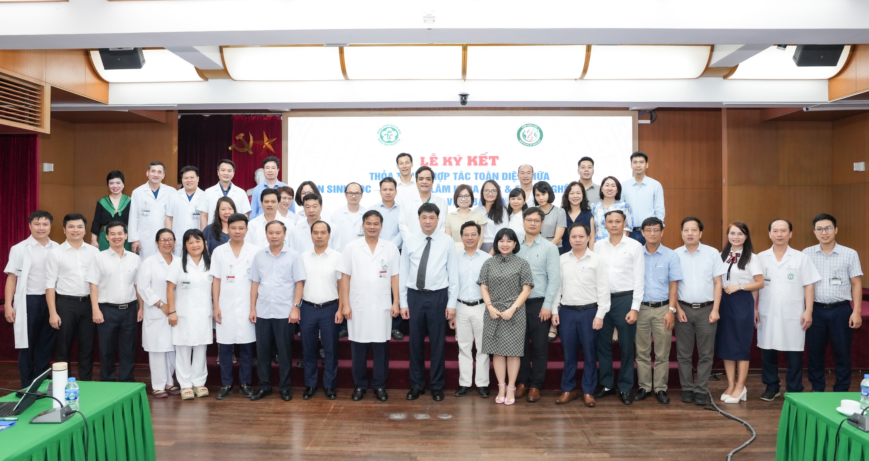Buổi lễ có sự tham dự của đông đảo các đại biểu đến từ hai đơn vị. Về phía Bệnh viện Bạch Mai, có PGS.TS. Đào Xuân Cơ - Bí thư Đảng ủy, Giám đốc Bệnh viện; các Phó giám đốc Bệnh viện: PGS.TS. Vũ Văn Giáp, PGS.TS. Nguyễn Tuấn Tùng, CVCC. Vũ Văn Hồng cùng lãnh đạo các Viện, Trung tâm, Khoa, Phòng. Về phía Viện Sinh học - Viện Hàn lâm Khoa học và Công nghệ Việt Nam, có sự hiện diện của GS.TS. Chu Hoàng Hà - Viện trưởng Viện Sinh học, Phó Chủ tịch Viện Hàn lâm KH&CN Việt Nam cùng với lãnh đạo các Viện, Trung tâm, phòng ban liên quan.
