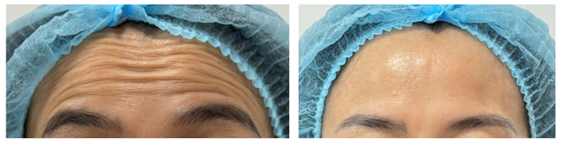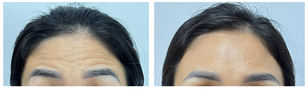 Bệnh nhân nữ, 47 tuổi, thực hiện điều trị nếp nhăn trán, kết quả xoá nếp nhăn động rõ rệt sau 1 tuần