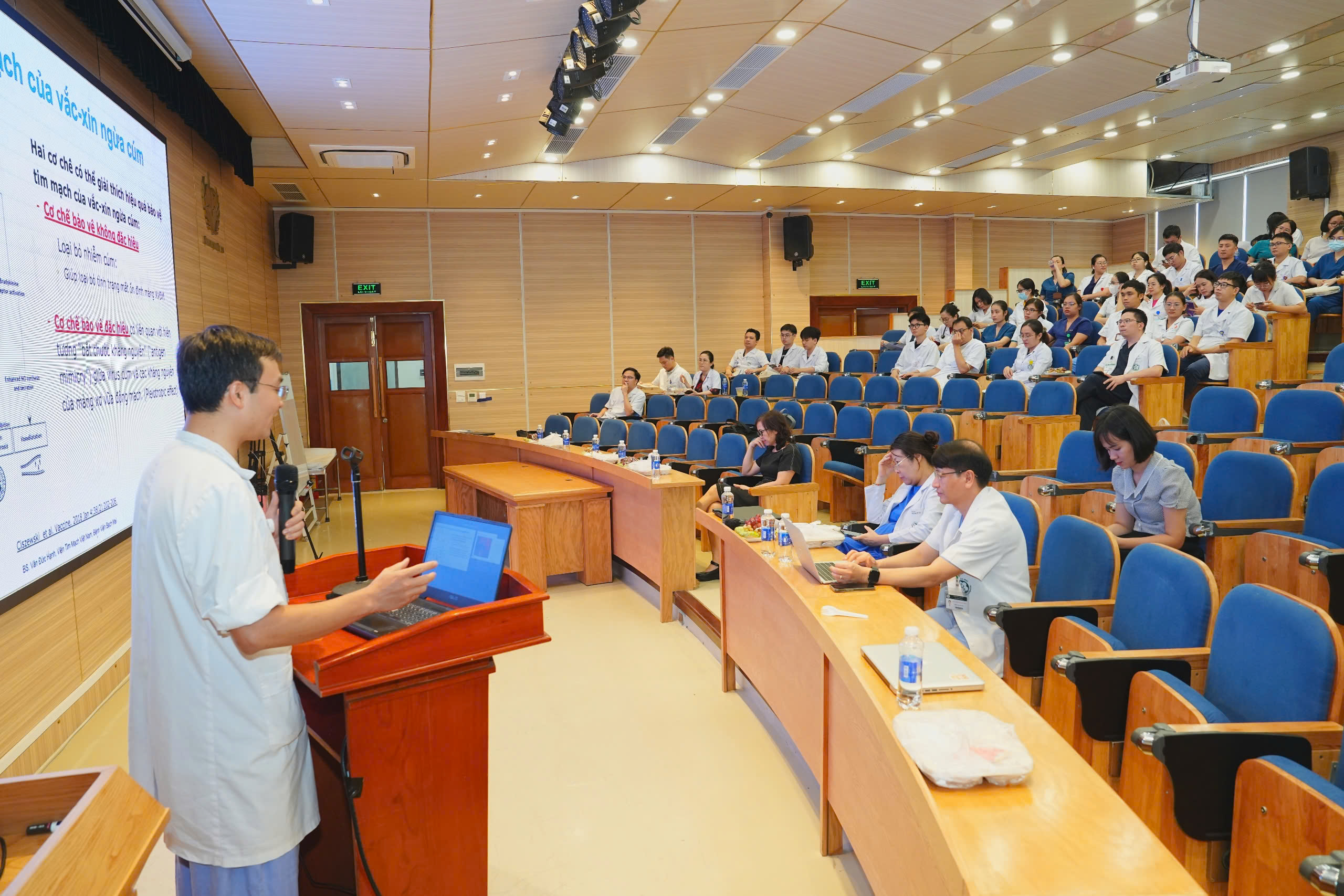 Một trong những nội dung trọng tâm của hội thảo là mối liên hệ sâu sắc giữa nhiễm cúm mùa và nguy cơ gia tăng các biến cố tim mạch. BSCKII. Văn Đức Hạnh (Phòng C1, Viện Tim mạch) đã trình bày một báo cáo tổng quan, cung cấp những bằng chứng khoa học thuyết phục.