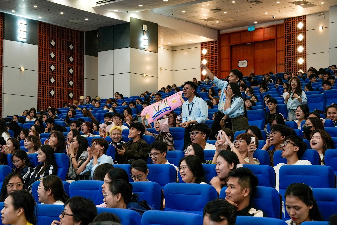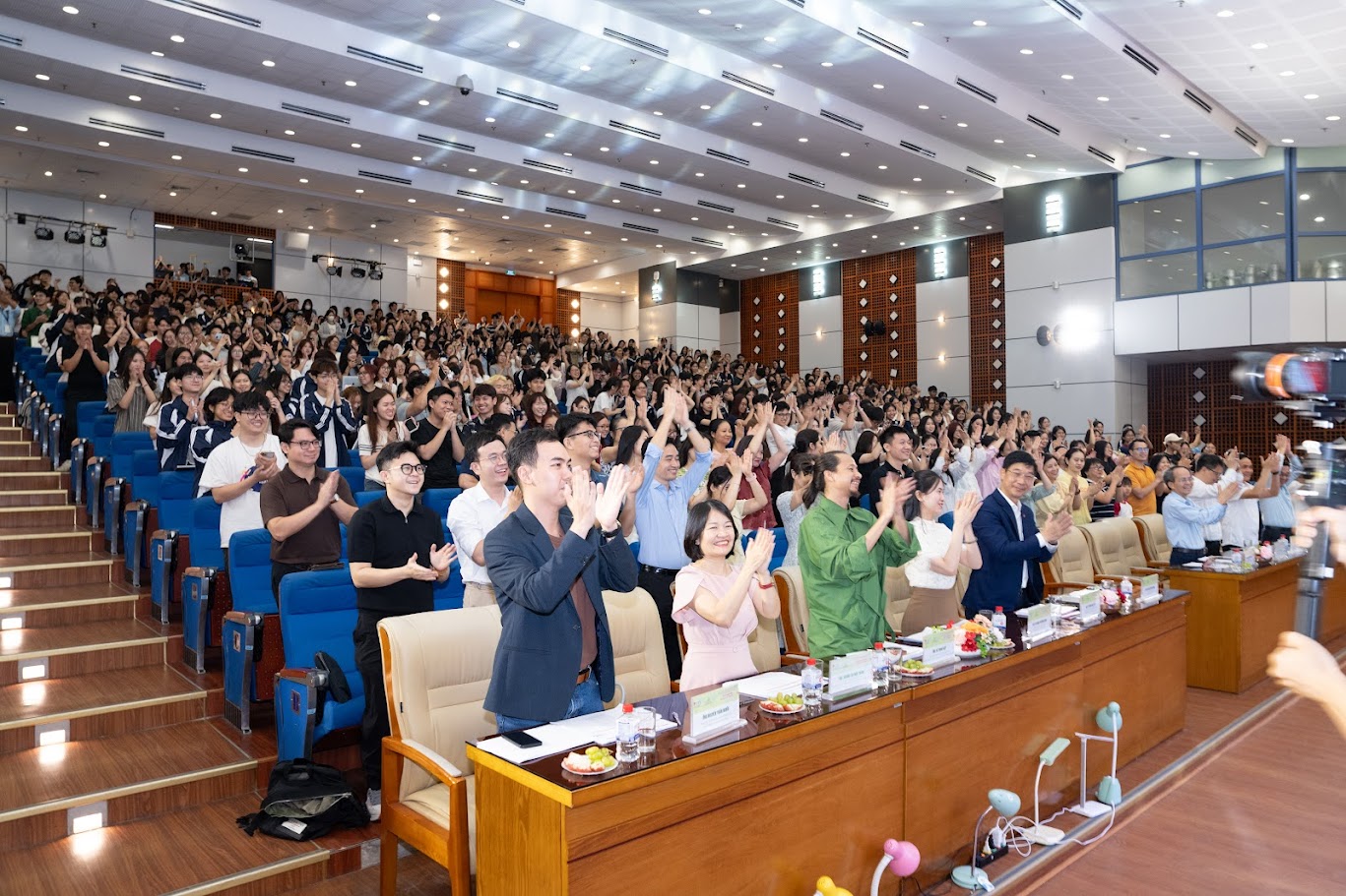 Không khí Hội trường A2 trở nên sôi động khi hàng trăm sinh viên cùng hô vang khẩu hiệu: “Sức khỏe - Khỏe - Hiến máu!”. Đây không chỉ là nghi thức, mà còn thể hiện tinh thần xuyên suốt mà chương trình hướng tới.