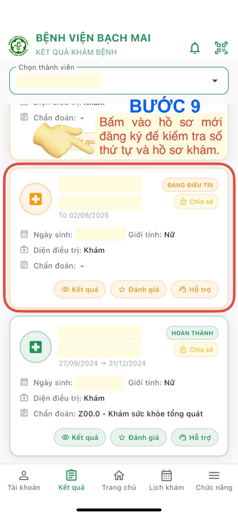 Vào App Bạch Mai Care - Hồ sơ sức khoẻ và làm theo các bước sau: