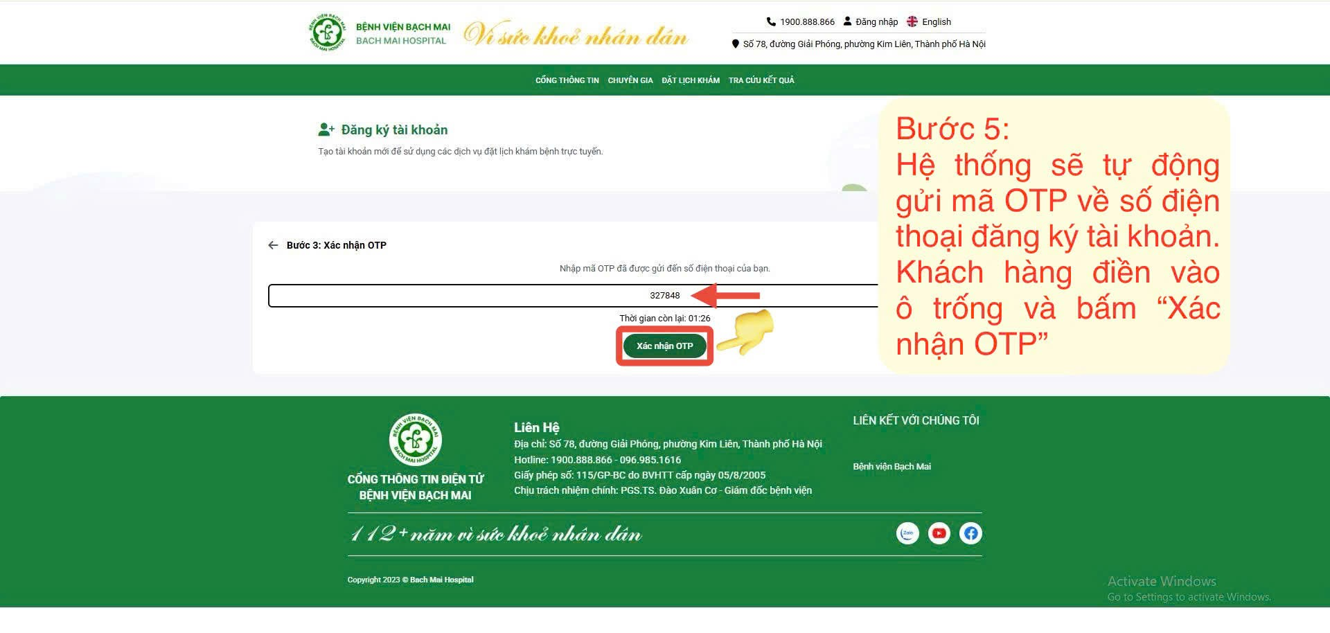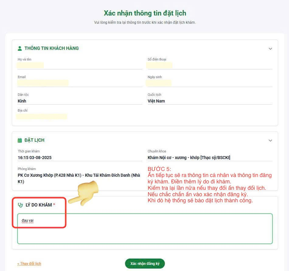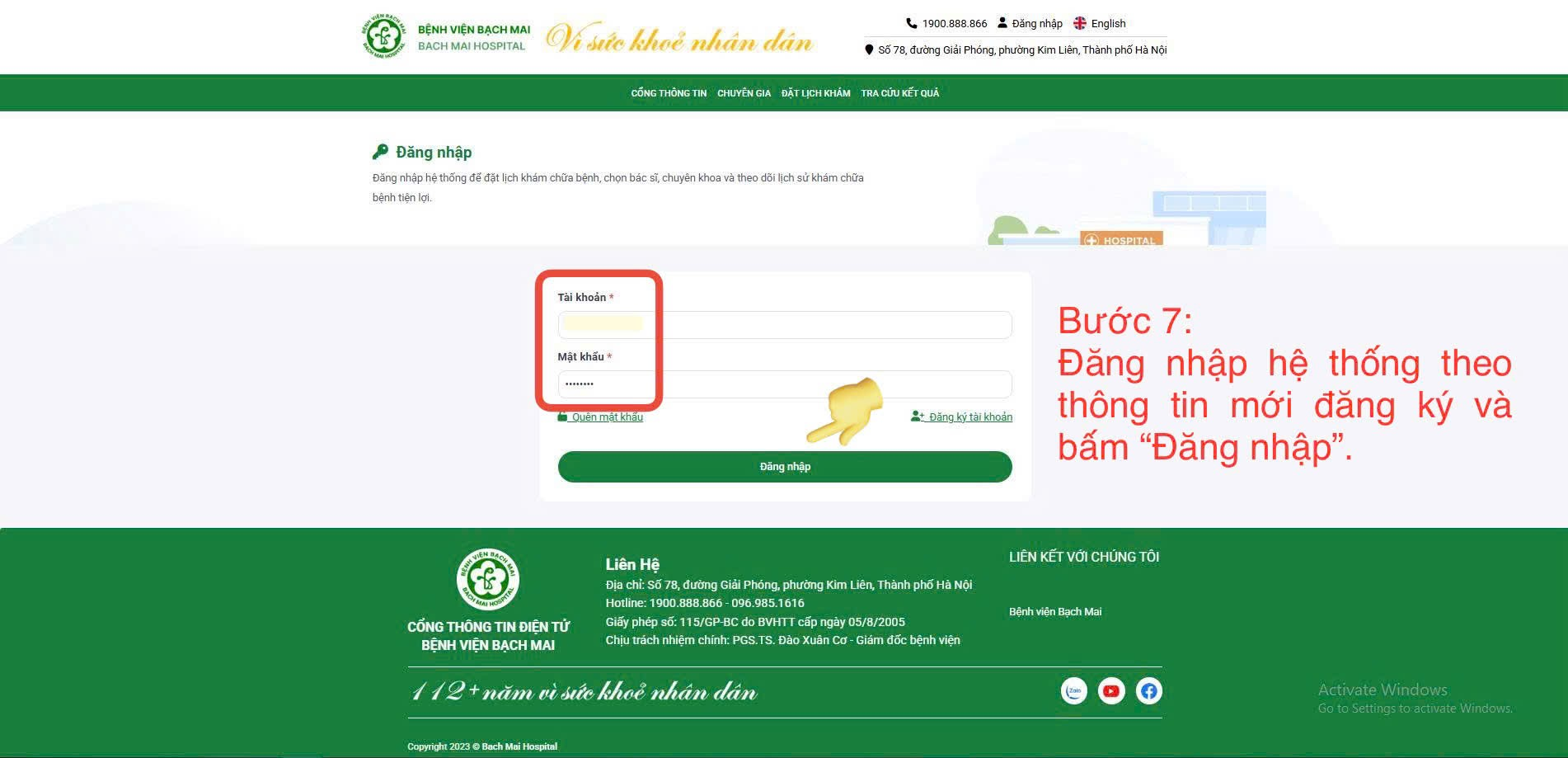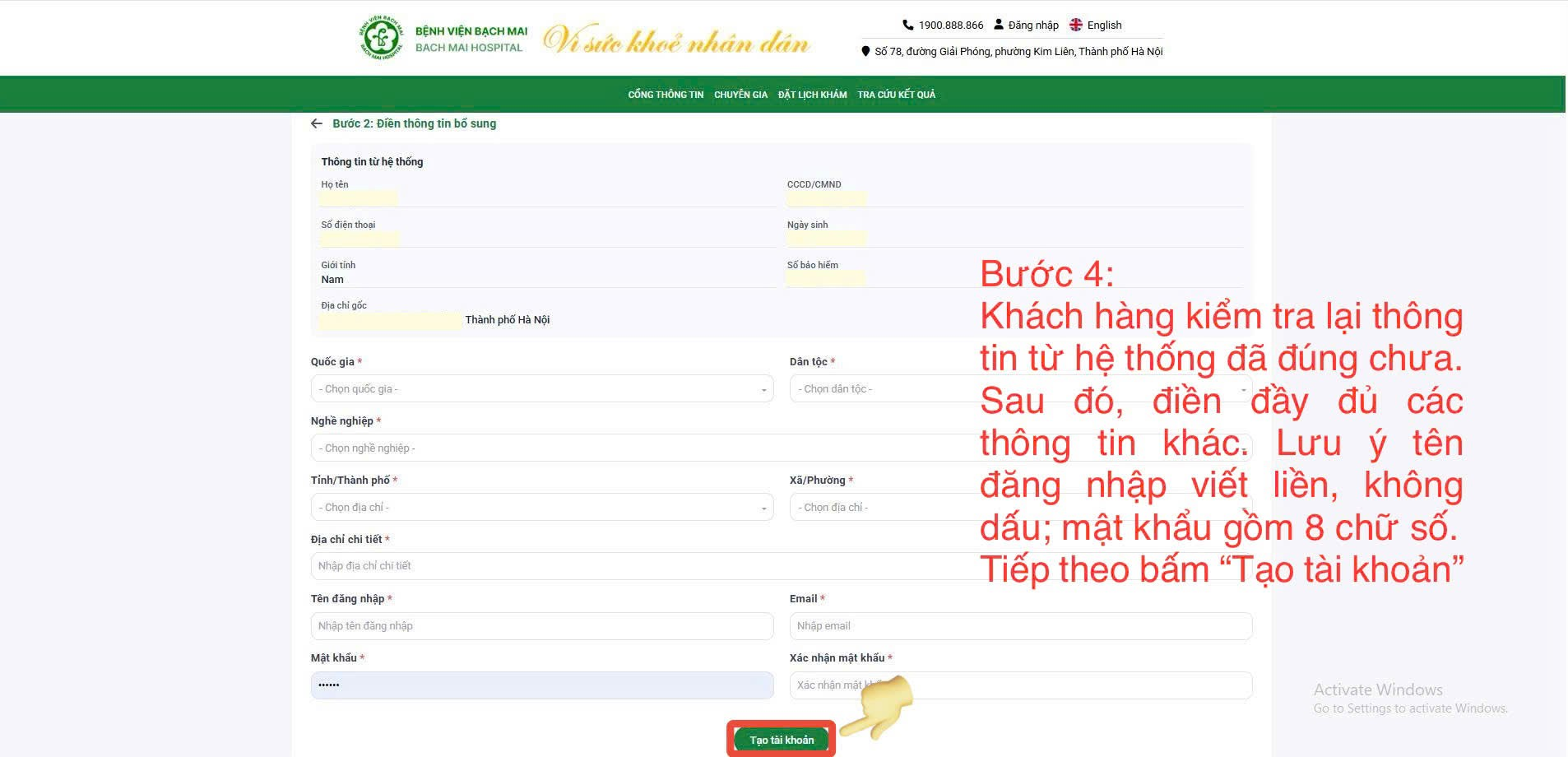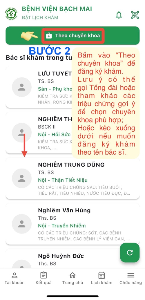 Vào website Bệnh viện Bạch Mai https://bachmai.gov.vn/ , chọn mục Đặt lịch khám và làm theo các bước dưới đây: