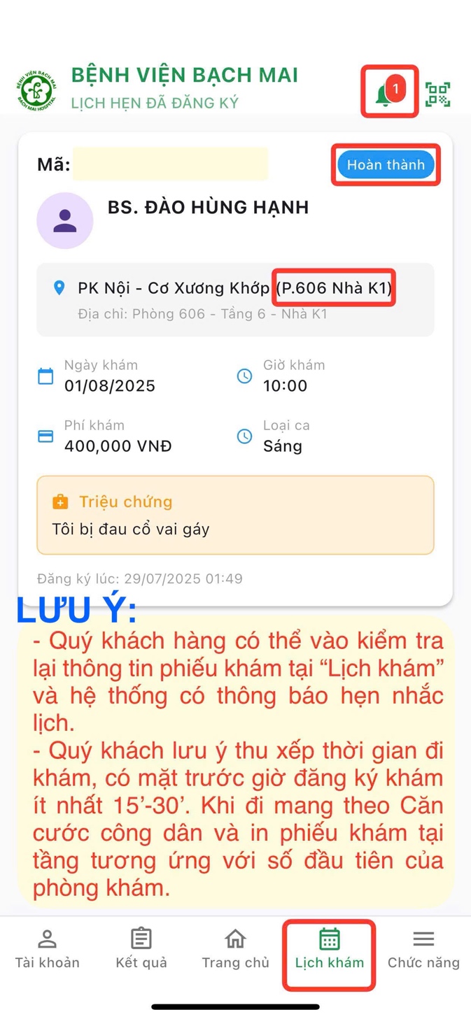 Khi thăm khám tại Bệnh viện Bạch Mai, người dân có thể đặt lịch khám bệnh online qua App “Bạch Mai Care - Hồ sơ sức khoẻ” hoặc Website: https://bachmai.gov.vn/ chọn phần Đặt lịch khám (https://dkkham.bachmai.gov.vn/login).