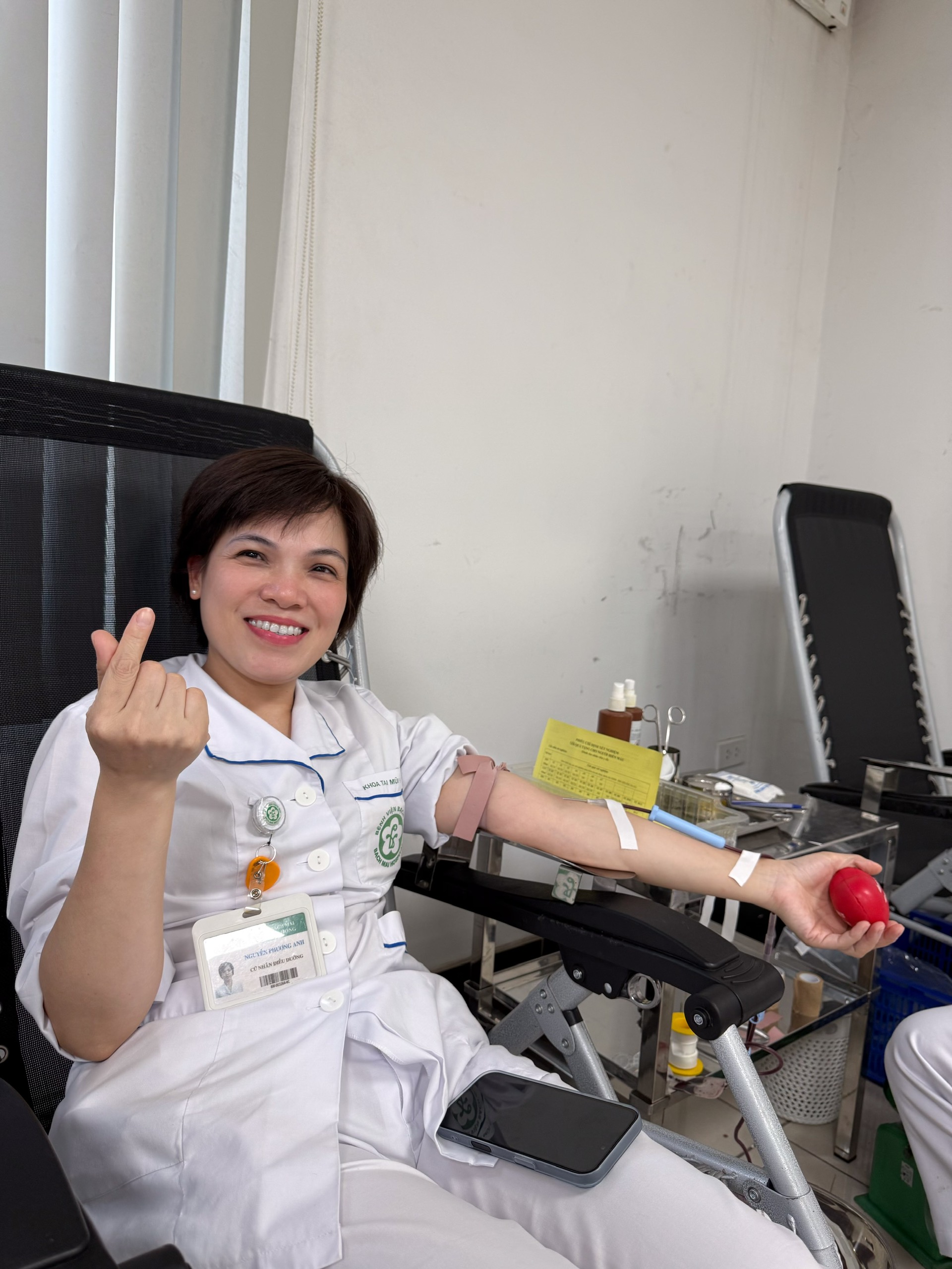 Nhìn tấm phiếu đăng ký hiến máu màu vàng đặt trên bàn, ít ai biết rằng đằng sau những con số tưởng chừng khô khan ấy là hành trình gần một thập kỷ của một điều dưỡng Bạch Mai. Trong không khí Giáng sinh ấm áp tại điểm hiến máu cố định của bệnh viện, chị Phương Anh xuất hiện với nụ cười quen thuộc, bàn tay tạo hình trái tim. Đây là lần hiến máu thứ 31 của chị.