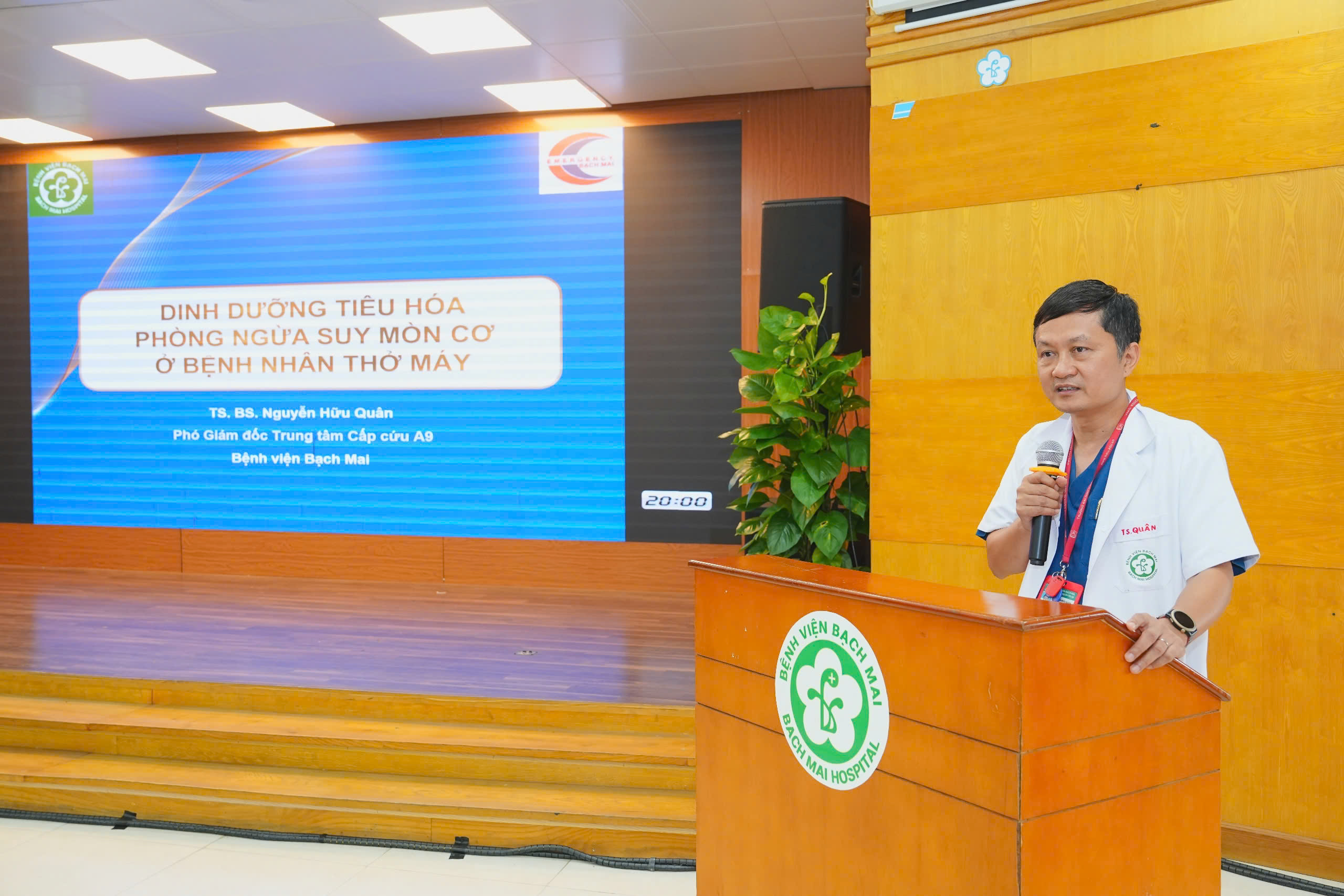 Hồi sức cấp cứu - ICU: TS.BS Nghiêm Nguyệt Thu, Giám đốc Trung tâm Dinh dưỡng Lâm sàng và TS.BS Nguyễn Hữu Quân, Phó Giám đốc Trung tâm Cấp cứu A9 chia sẻ các thông tin xung quanh vấn đề dinh dưỡng cho bệnh nhân ICU, dinh dưỡng tiêu hoá phòng ngừa suy mòn cơ ở bệnh nhân thở máy. Theo đó, các bác sĩ cảnh báo nguy cơ suy mòn cơ cấp tính ở người bệnh và giải pháp nuôi ăn sớm qua đường tiêu hóa, cá thể hóa điều trị dinh dưỡng . Đảm bảo đủ năng lượng, protein, kết hợp vận động phục hồi chức năng. Điều này giúp giảm biến chứng loét tì đè, viêm phổi và tử vong.