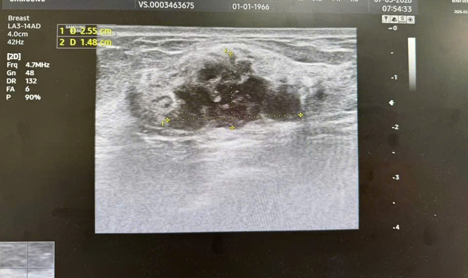 Trong suốt quá trình thăm khám, người bệnh không có bất kỳ triệu chứng bất thường nào: Không đau, không sờ thấy khối u, không có thay đổi trên da vùng vú. Tuy nhiên, nhờ kinh nghiệm lâm sàng và các phương tiện chẩn đoán chuyên sâu, bác sĩ đã phát hiện dấu hiệu bất thường nằm sâu trong mô tuyến vú: