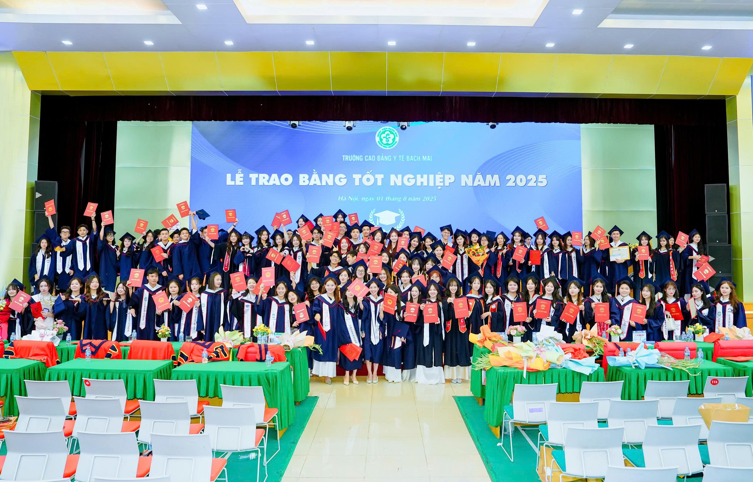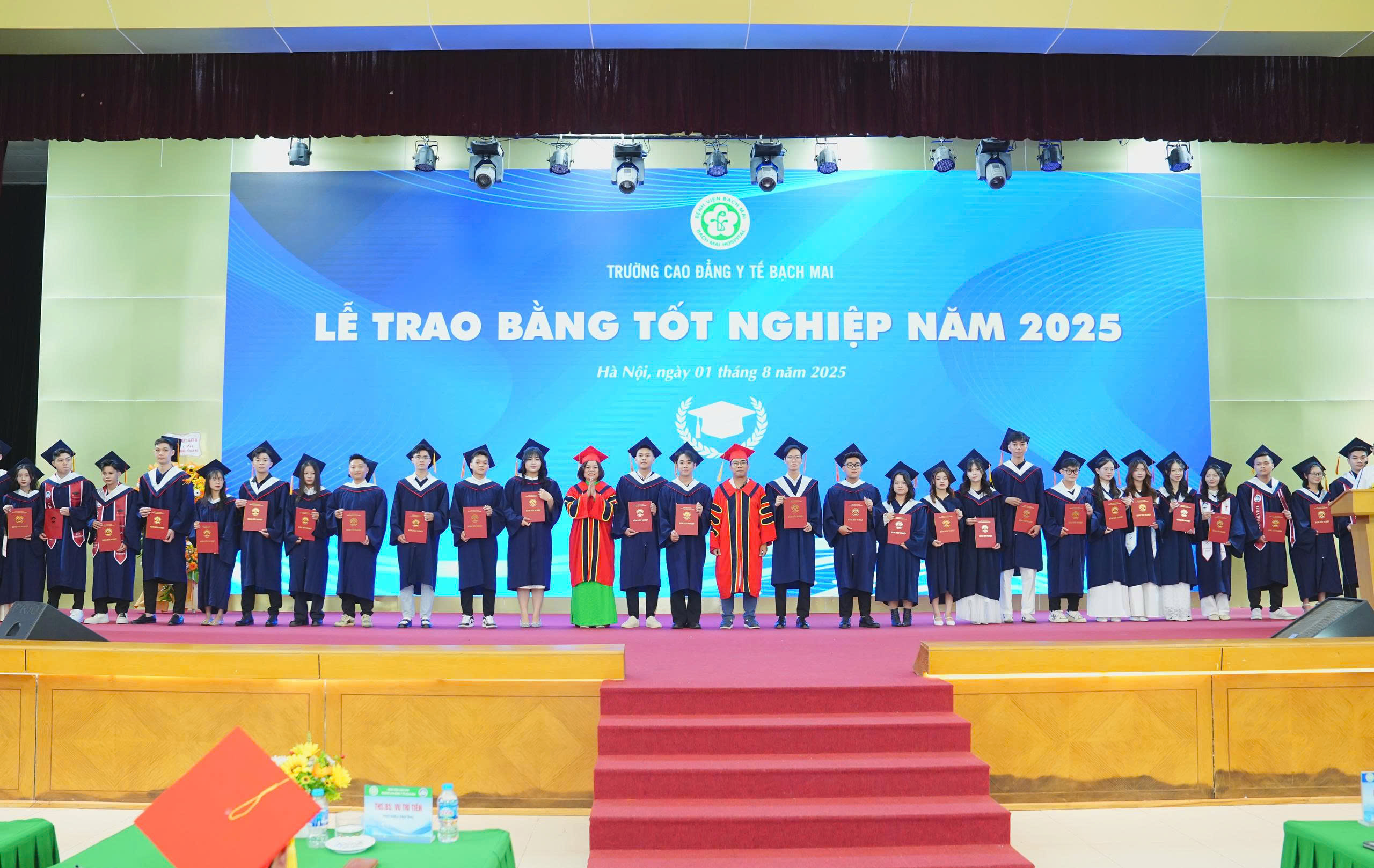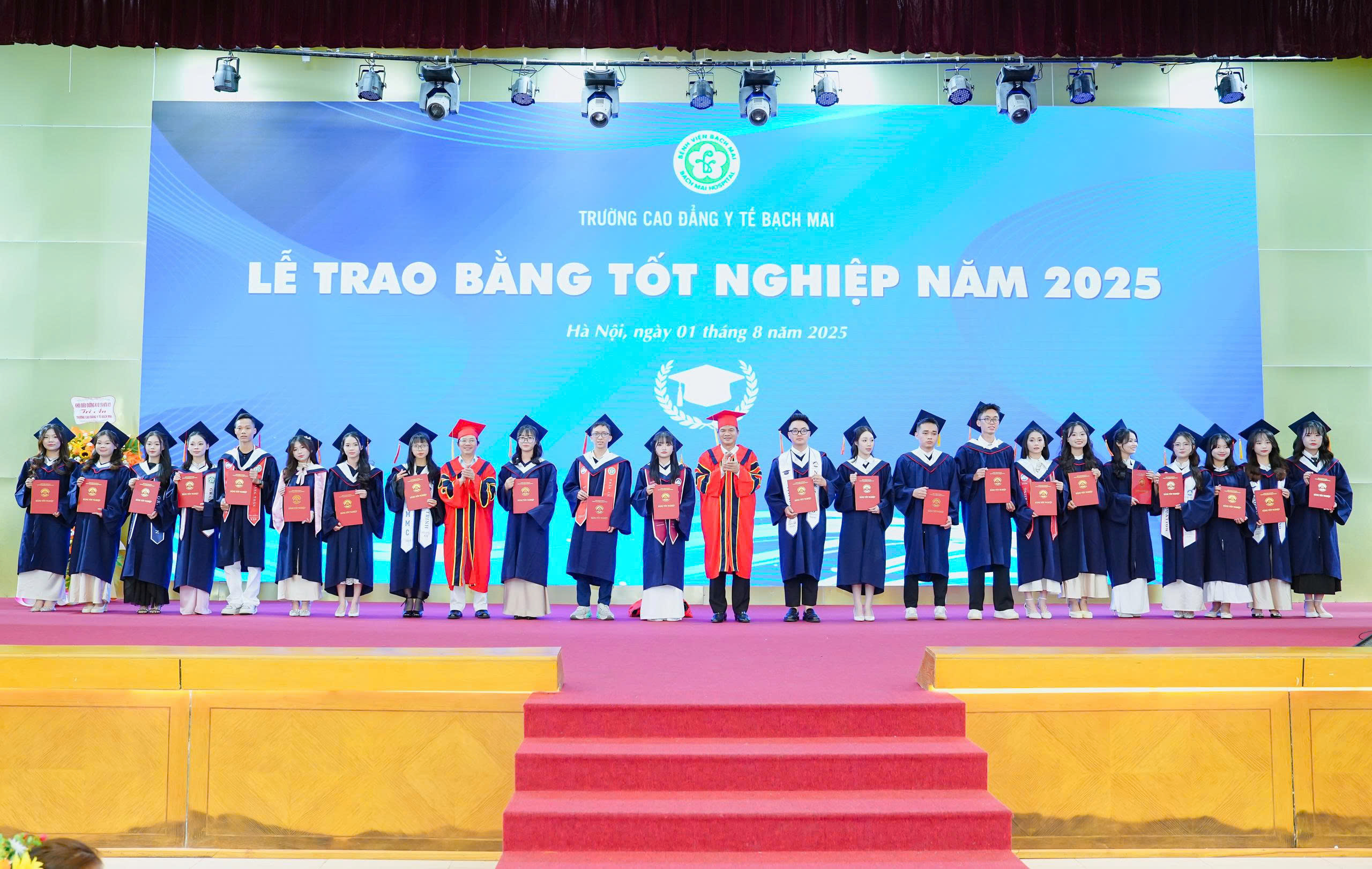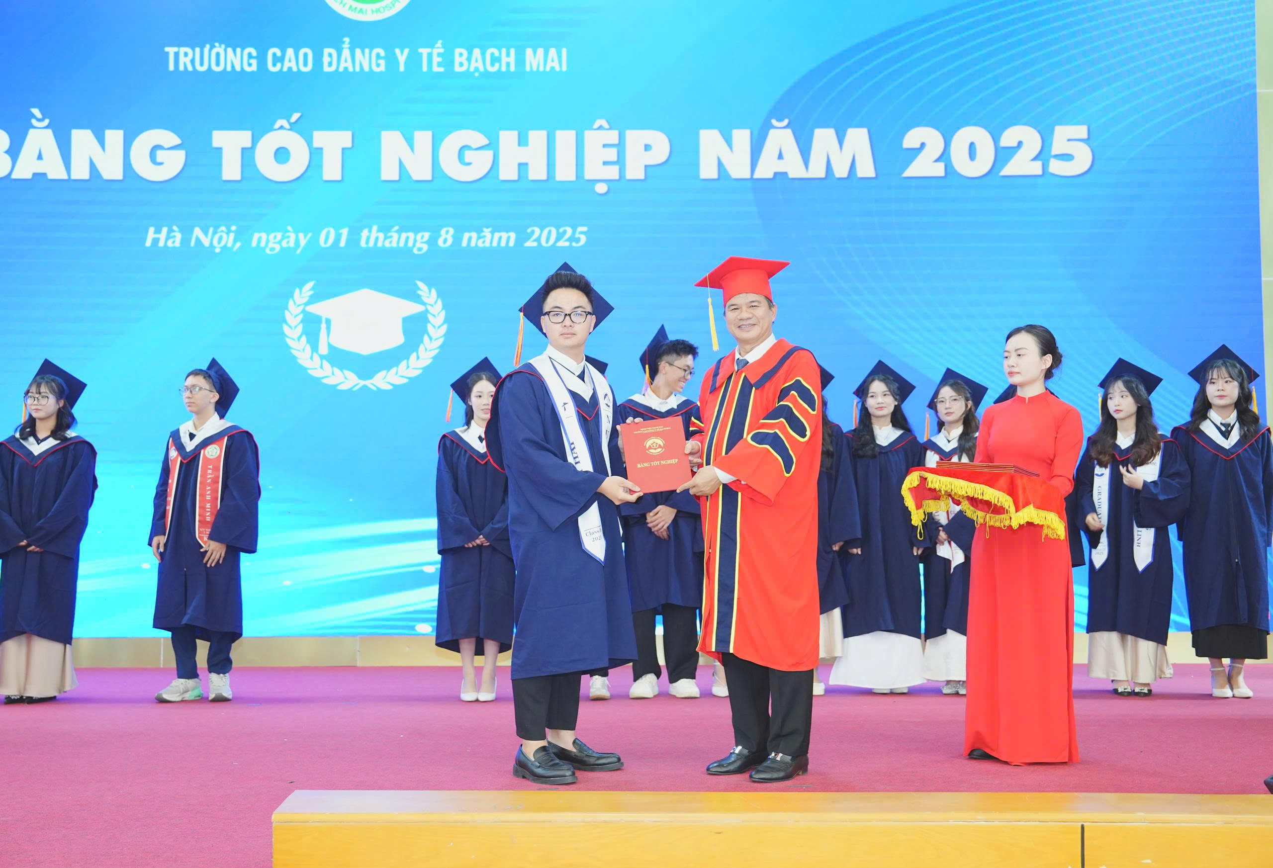 Ngày đăng: 02/08/2025Tác giả: Diệu Hiền - Thành DươngNgày 01/8/2025, Trường Cao đẳng Y tế Bạch Mai đã long trọng tổ chức Lễ trao bằng tốt nghiệp cho 423 tân cử nhân thuộc các ngành điều dưỡng (khóa 10) và kỹ thuật y (khóa 9). Buổi lễ không chỉ đánh dấu sự kết thúc của chặng đường học tập đầy nỗ lực mà còn mở ra một tương lai đầy hứa hẹn cho các em trong hành trình chăm sóc sức khỏe nhân dân.