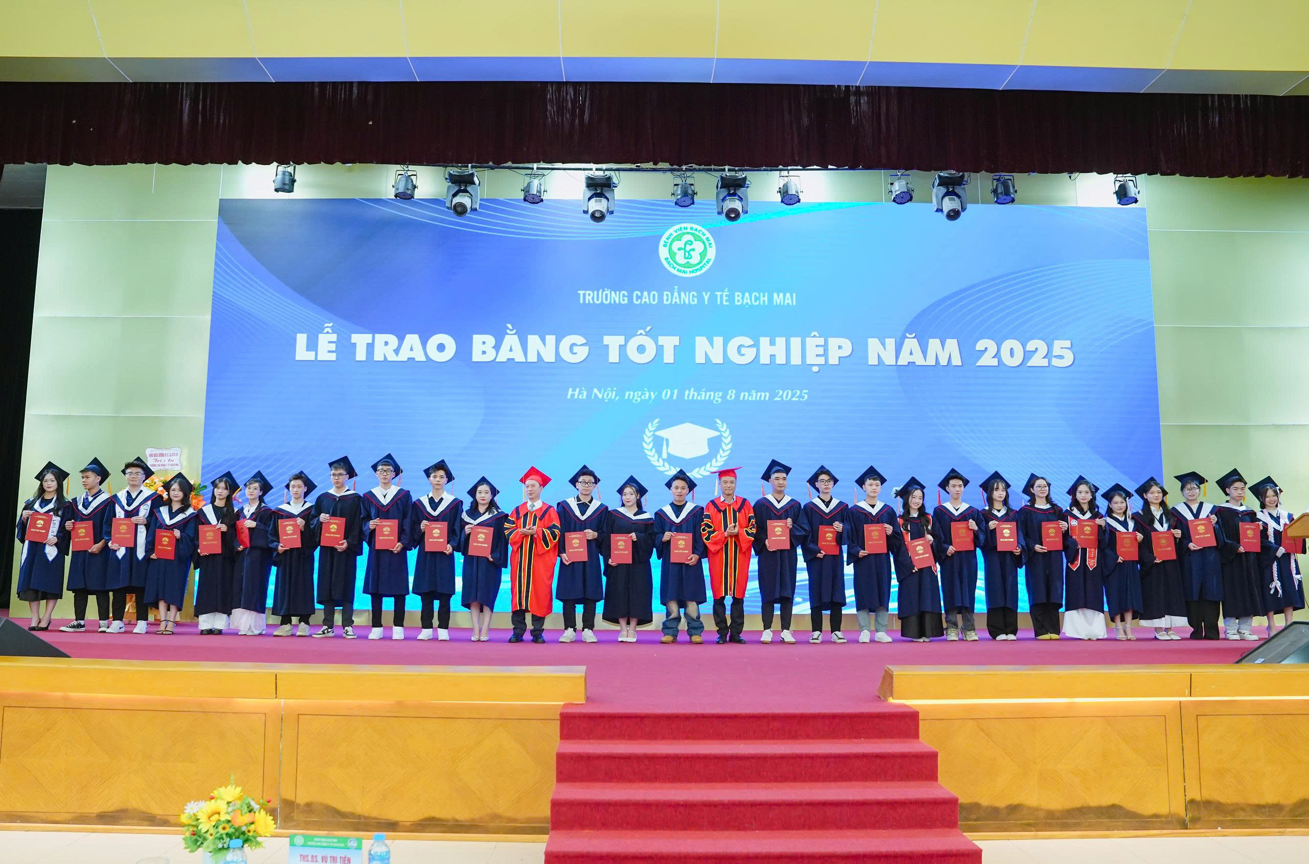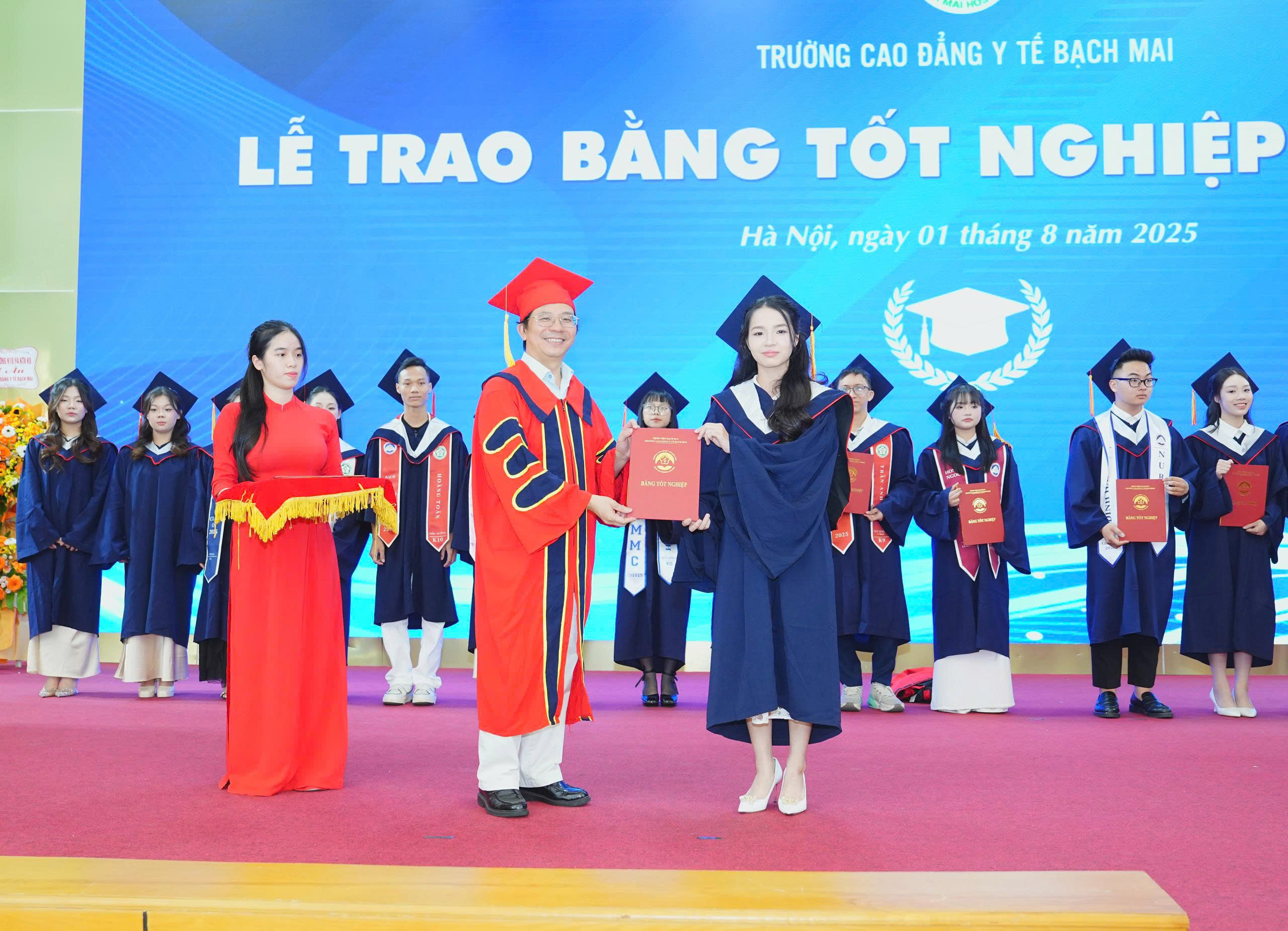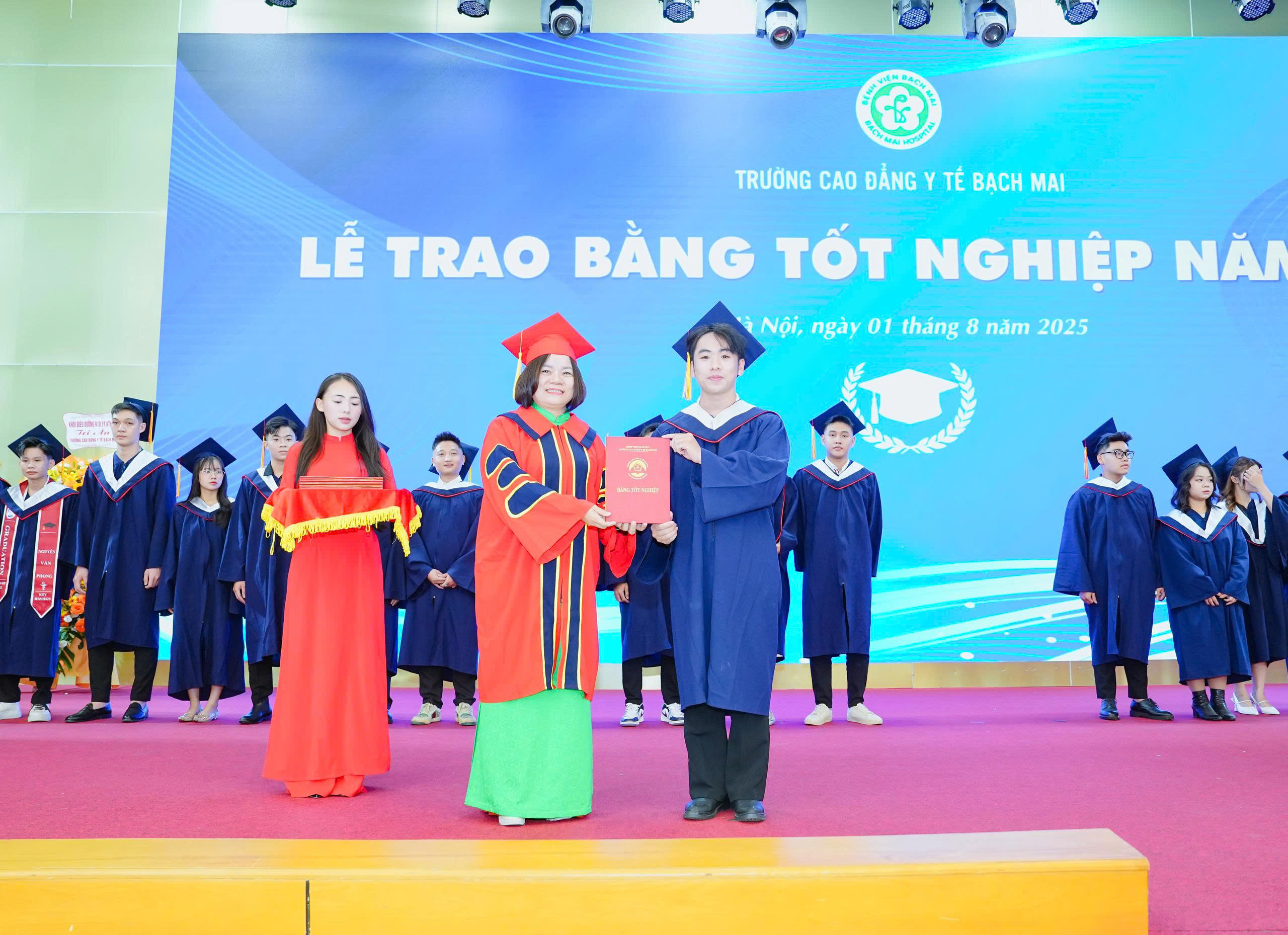 Ngày đăng: 02/08/2025Tác giả: Diệu Hiền - Thành DươngNgày 01/8/2025, Trường Cao đẳng Y tế Bạch Mai đã long trọng tổ chức Lễ trao bằng tốt nghiệp cho 423 tân cử nhân thuộc các ngành điều dưỡng (khóa 10) và kỹ thuật y (khóa 9). Buổi lễ không chỉ đánh dấu sự kết thúc của chặng đường học tập đầy nỗ lực mà còn mở ra một tương lai đầy hứa hẹn cho các em trong hành trình chăm sóc sức khỏe nhân dân.