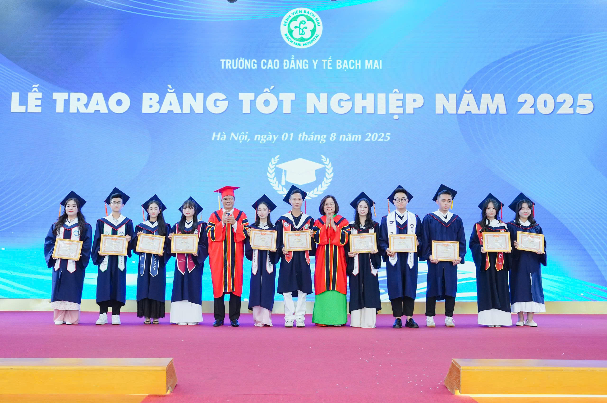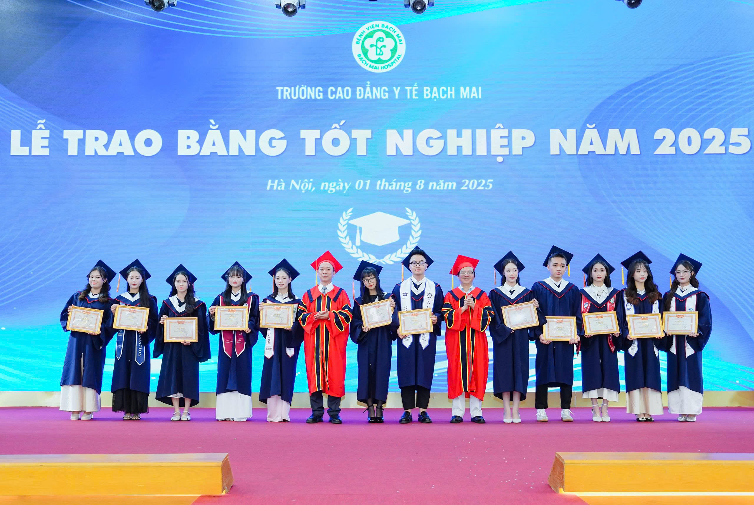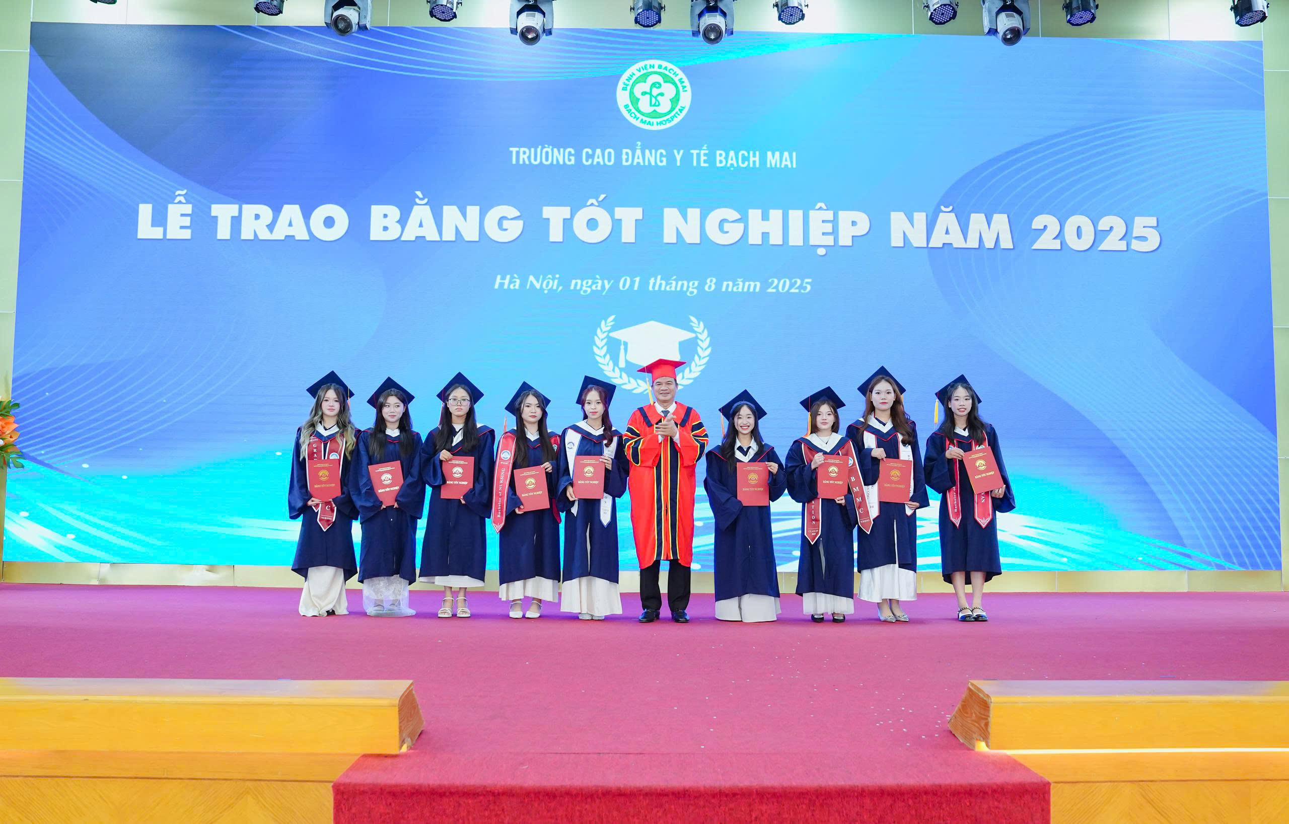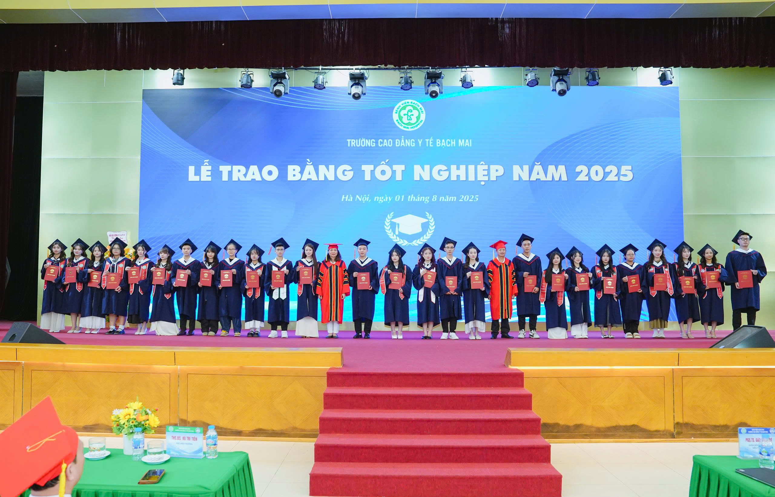 Ngày đăng: 02/08/2025Tác giả: Diệu Hiền - Thành DươngNgày 01/8/2025, Trường Cao đẳng Y tế Bạch Mai đã long trọng tổ chức Lễ trao bằng tốt nghiệp cho 423 tân cử nhân thuộc các ngành điều dưỡng (khóa 10) và kỹ thuật y (khóa 9). Buổi lễ không chỉ đánh dấu sự kết thúc của chặng đường học tập đầy nỗ lực mà còn mở ra một tương lai đầy hứa hẹn cho các em trong hành trình chăm sóc sức khỏe nhân dân.
