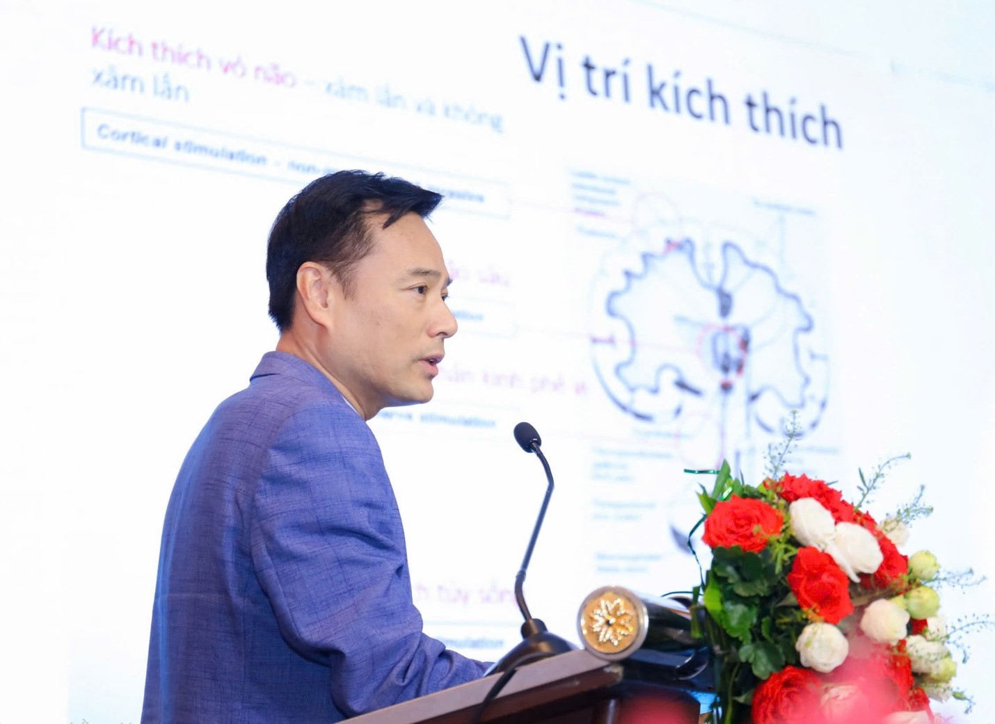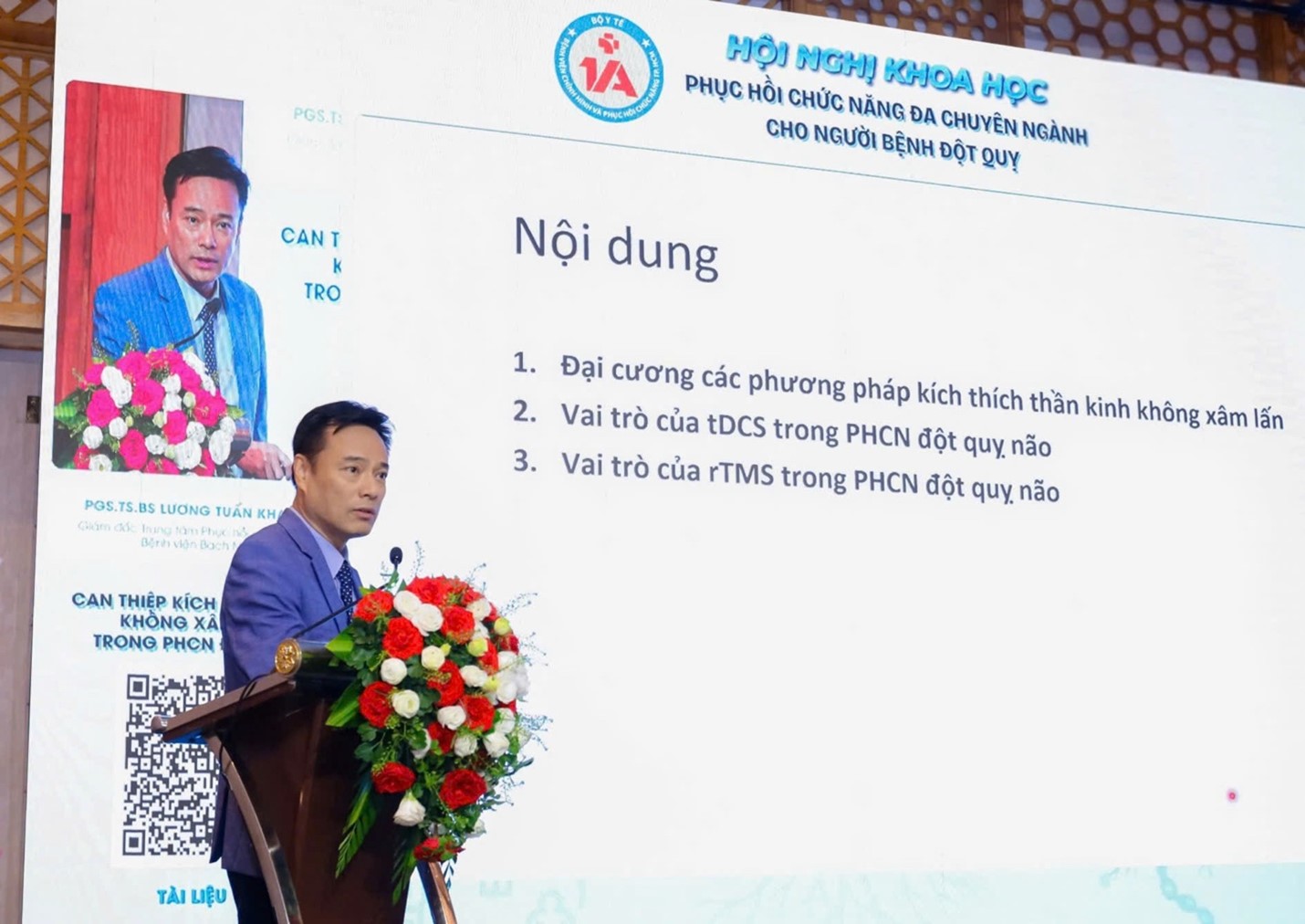 PGS.TS.BS Lương Tuấn Khanh - Giám đốc Trung tâm Phục hồi chức năng, Bệnh viện Bạch Mai trình bày các kỹ thuật kích thích não không xâm lấn trong phục hồi chức năng đột quỵ
