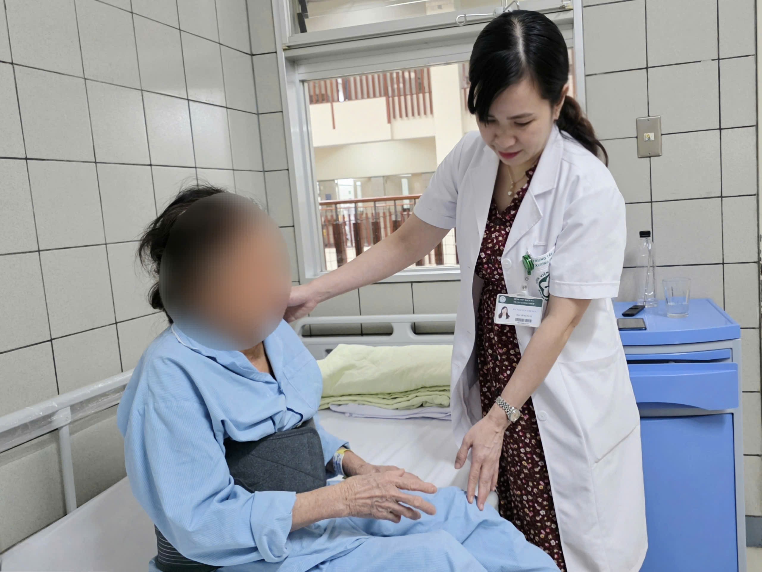 TS. BS. Nguyễn Thị Nga, Trung tâm Cơ xương khớp, Bệnh viện Bạch Mai thăm khám, tư vấn cho bệnh nhân loãng xương