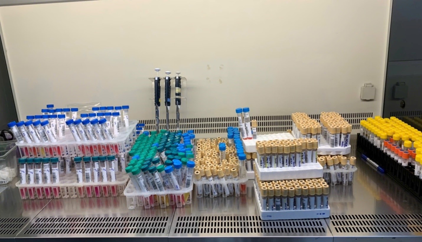 - Ở khu miễn dịch, mẫu huyết thanh được đưa lên các hệ thống xét nghiệm hiện đại để tìm kiếm kháng nguyên, kháng thể đặc hiệu.