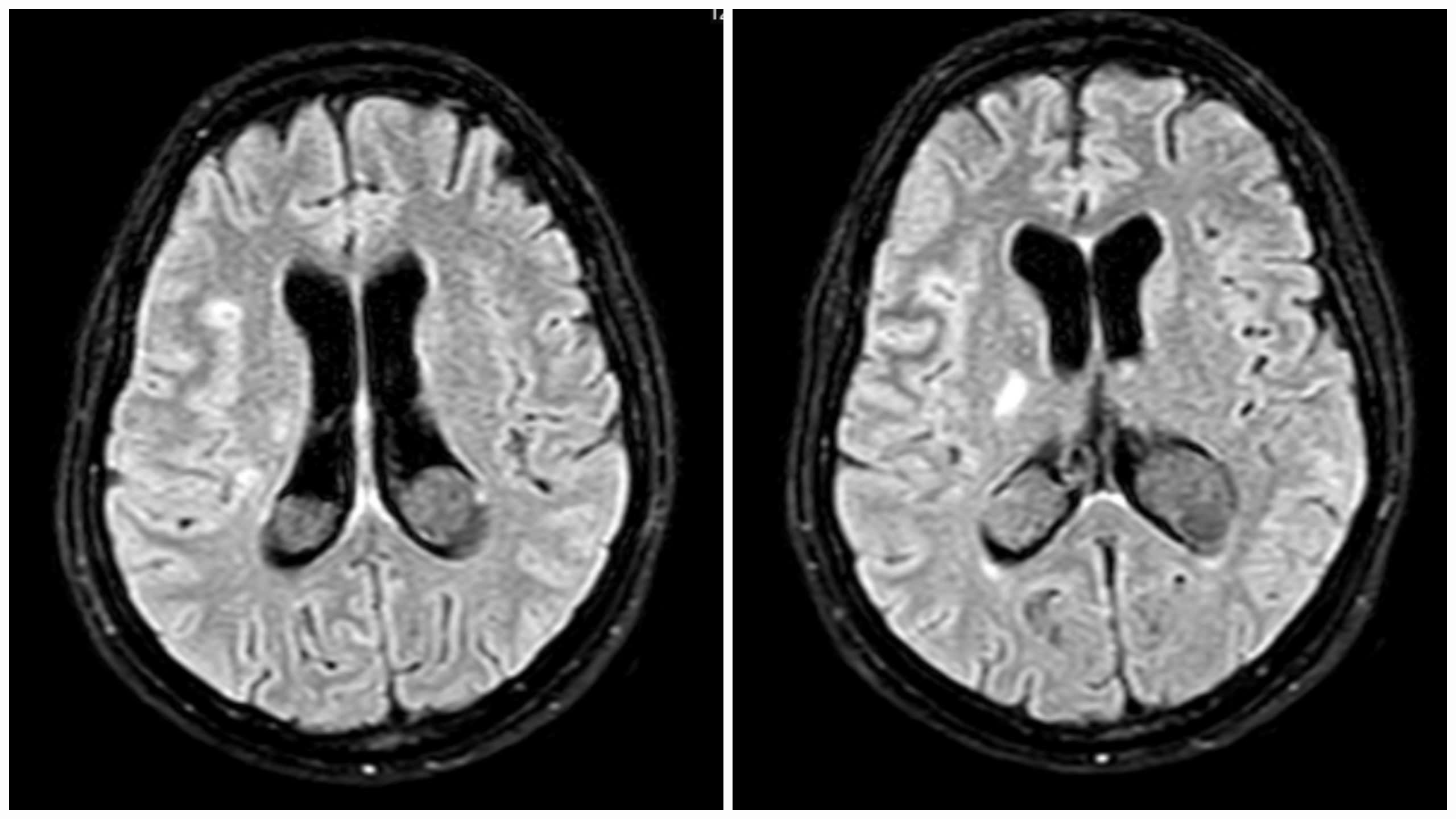 Kết quả MRI sọ sản phụ cho thấy tổn thương chất trắng rải rác hai bên bán cầu não