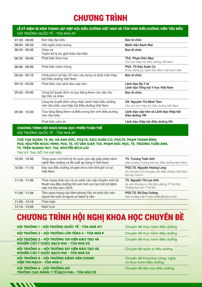 Hãy ghi nhớ lịch sự kiện và theo dõi các kênh truyền thông của Bệnh viện Bạch Mai để không bỏ lỡ những chương trình, nội dung ý nghĩa trong hai ngày 24 và 25/10. Đây là cơ hội quý báu để mỗi điều dưỡng viên tiếp tục trau dồi kỹ năng, hoàn thiện chuyên môn và cùng nhau góp phần xây dựng một cộng đồng điều dưỡng chuyên nghiệp - tận tâm - nhân ái.