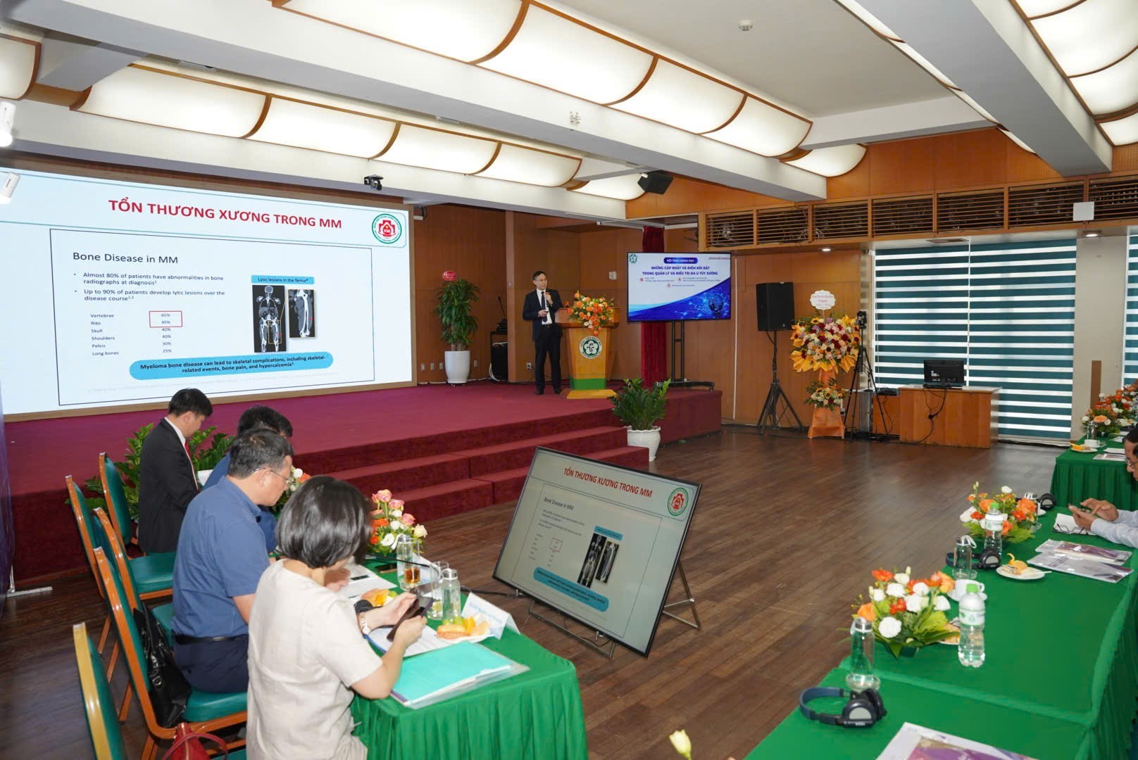 Cụ thể tại hội thảo, với nhóm thể trạng kém hoặc mắc nhiều bệnh đồng thời - bệnh nhân không đủ điều kiện ghép, các chuyên gia chỉ ra mục tiêu là cân bằng hiệu quả và an toàn, cá thể hóa phác đồ, điều chỉnh liều phù hợp, ưu tiên giảm độc tính và duy trì chất lượng sống. Các phác đồ hiện hành tại Việt Nam gồm VMP, DRd, D-VMP; Daratumumab khi kết hợp trong giai đoạn tấn công giúp nâng cao tỷ lệ đáp ứng và kéo dài thời gian lui bệnh.