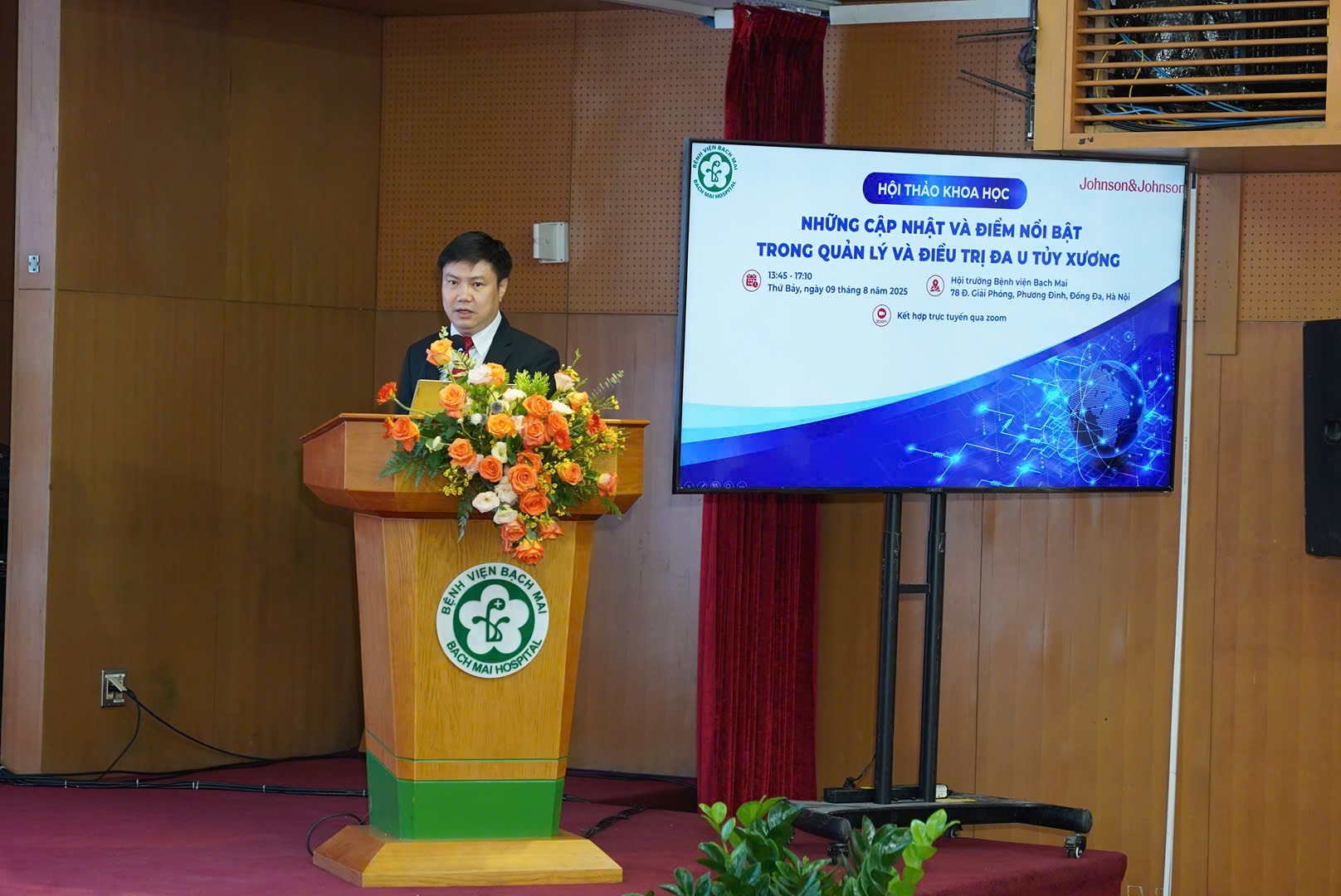 Ngày đăng: 11/08/2025Tác giả: Nguyên HàNhững cập nhật quan trọng trong quản lý và điều trị đa u tủy xương - một bệnh lý huyết học ác tính, thường gặp ở người cao tuổi, có tiến triển phức tạp và tỷ lệ tái phát cao đã được các chuyên gia đến từ Bệnh viện Bạch Mai, Viện Huyết học Truyền máu Trung ương và Bệnh viện Trung ương Quân đội 108 và Giáo sư Hermann Einsele từ Cộng hòa Dân chủ Đức cùng nhau thảo luận, chia sẻ kinh nghiệm. Chương trình diễn ra ngày 9/8 tại Bệnh viện Bạch Mai mang đến nhiều thông tin thiết thực cho người dân và các cán bộ chuyên nghành Huyết học - Truyền Máu.