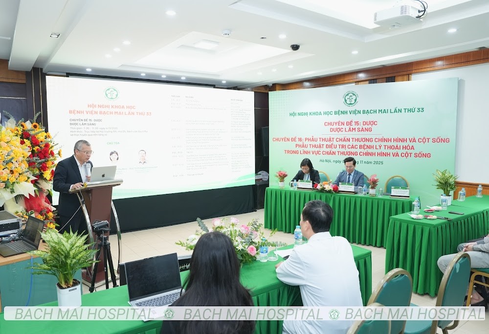 Ngày đăng: 06/11/2025Tác giả: Nguyên Hà - Thành DươngCông tác Dược lâm sàng rất quan trọng, giúp tối ưu hiệu quả điều trị và sử dụng thuốc an toàn hợp lý. Chuyên đề Dược lâm sàng tại Hội nghị Khoa học Bệnh viện Bạch Mai lần thứ 33 diễn ra ngày 04/11/2025 đã cho thấy một năm bứt tốc của đội ngũ dược sĩ lâm sàng với sự phát triển toàn diện hơn và bước đầu mở rộng tham gia vào nhiều lĩnh vực khó, thách thức.