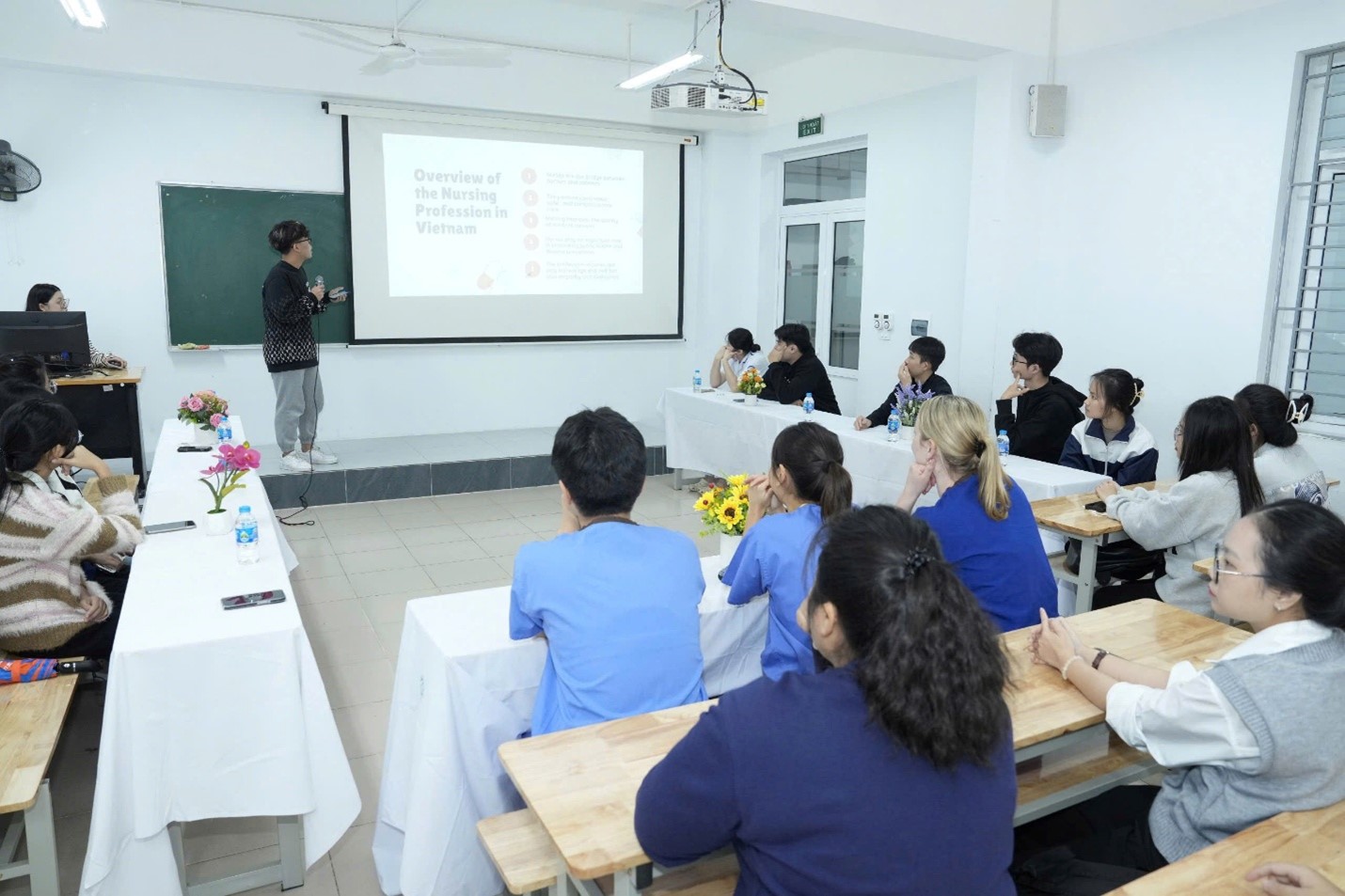 Sinh viên Trường Cao đẳng Y tế Bạch Mai tự chia sẻ văn hóa Việt Nam cũng như mô hình đào tạo gắn thực hành lâm sàng tại Bệnh viện Bạch Mai