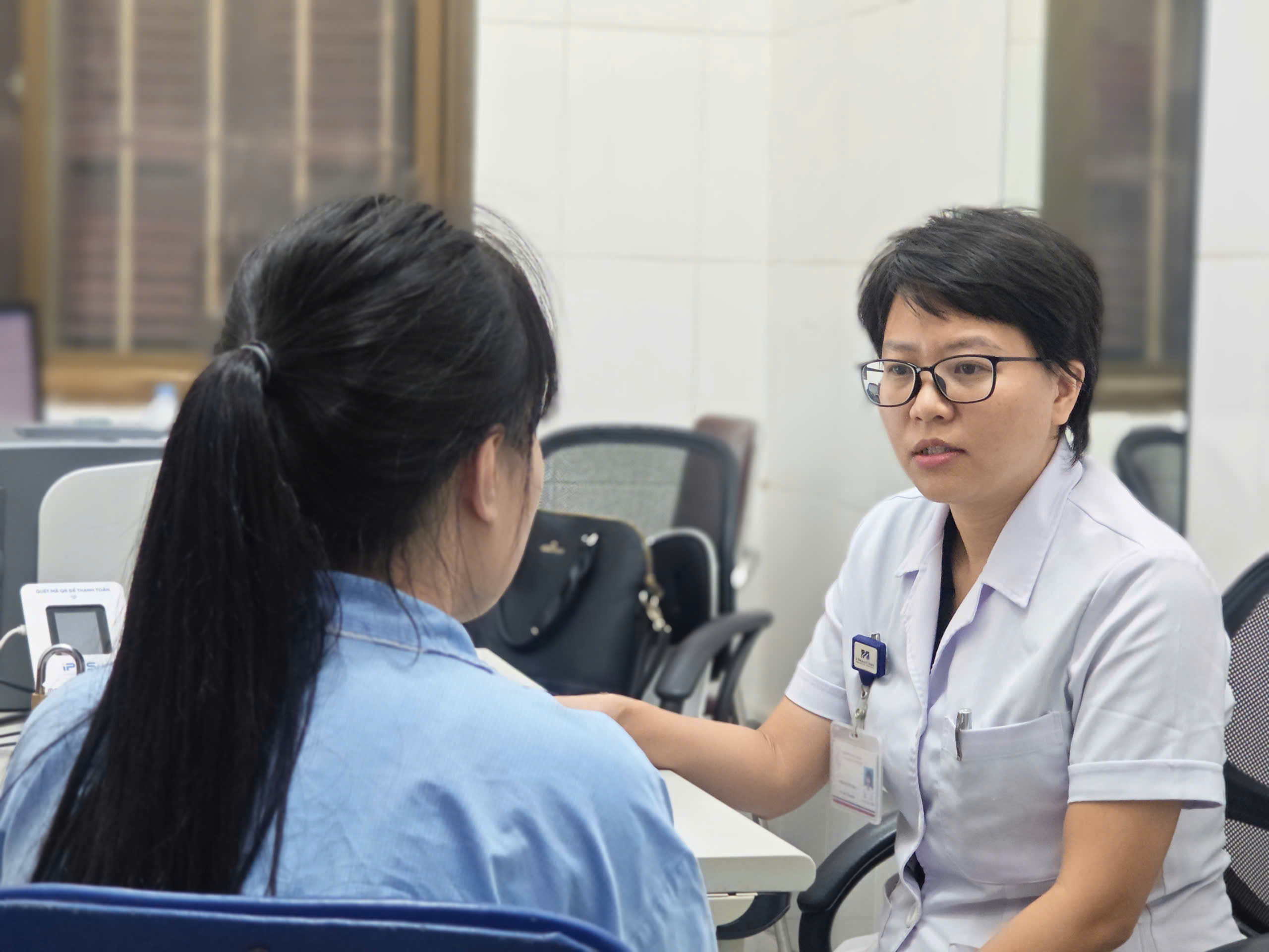 ThS.BSNT. Nguyễn Thị Hoa, Phó Trưởng phòng Tâm lý Lâm sàng, Viện Sức khỏe Tâm thần tư vấn cho người bệnh