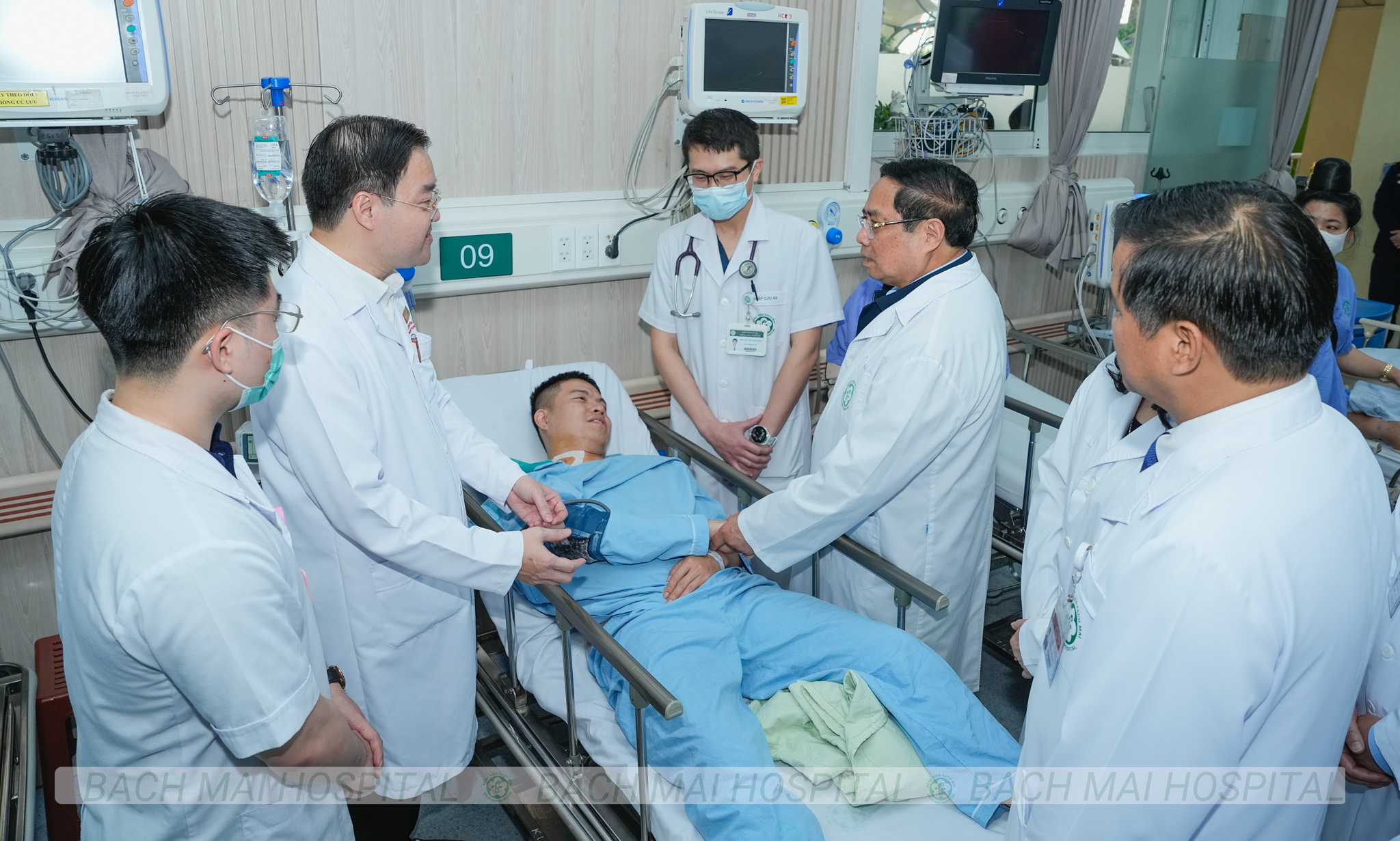 Thủ tướng Phạm Minh Chính và đoàn công tác thăm hỏi và tặng quà bệnh nhân đang điều trị tại Trung tâm Cấp cứu A9