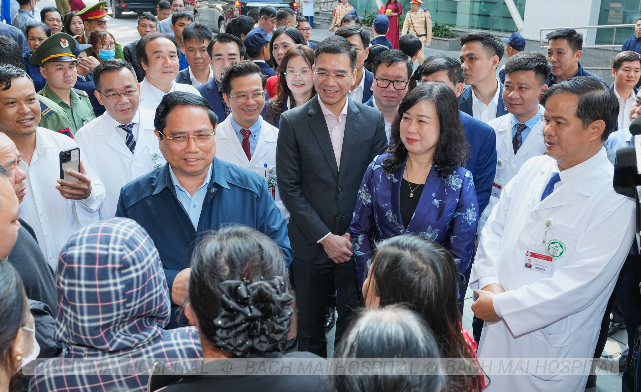 Thủ tướng Phạm Minh Chính và Bộ trưởng Bộ y tế Đào Hồng Lan chúc Tết và tặng quà cán bộ nhân viên y tế Bệnh viện Bạch Mai nhân dịp xuân Bính Ngọ 2026
