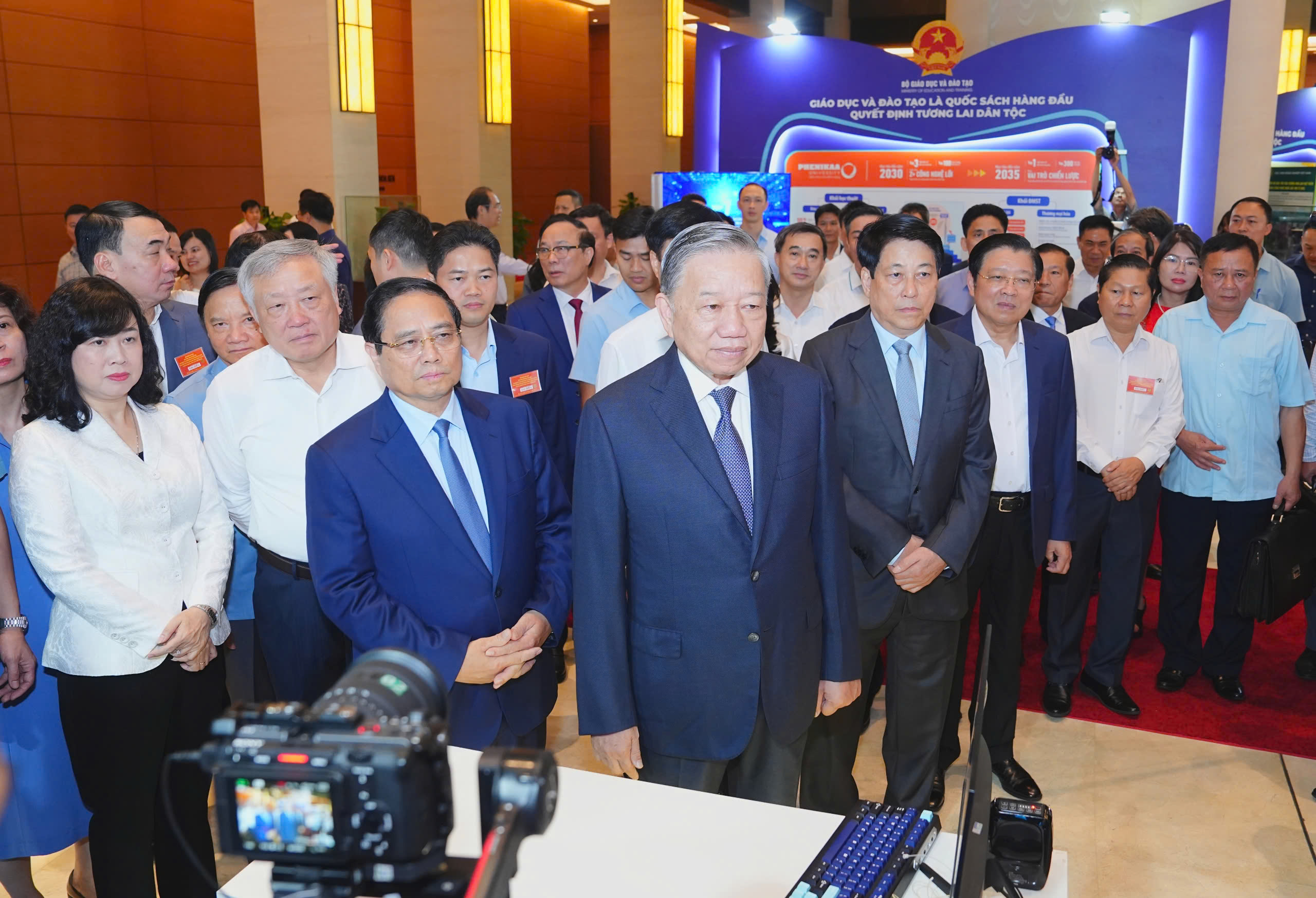 Ngày đăng: 17/09/2025Tác giả: Diệu Hiền - Thành DươngSáng 16/9, tại Nhà Quốc hội, Tổng Bí thư Tô Lâm đã dự và tham quan Triển lãm những thành tựu nổi bật của ngành Y tế và Giáo dục - Đào tạo. Cùng dự có các đồng chí Ủy viên Bộ Chính trị: Chủ tịch nước Lương Cường, Thủ tướng Chính phủ Phạm Minh Chính, Chủ tịch Quốc hội Trần Thanh Mẫn; các đồng chí Ủy viên Bộ Chính trị, Ủy viên Ban Bí thư, Ủy viên Trung ương Đảng, lãnh đạo các ban, bộ, ngành, cơ quan Trung ương.