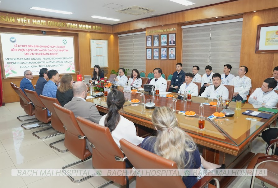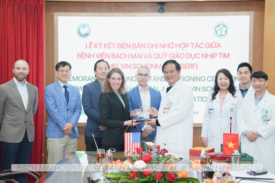 Ngày đăng: 29/01/2026Tác giả: Hospital Office - Department of Social WorkOn the morning of January 27, 2026, Bach Mai Hospital and the Melvin Scheinman Heart Rhythm Education Foundation (USA) signed a Memorandum of Understanding (MoU) to strengthen cooperation in training and advanced technology transfer in the diagnosis and treatment of cardiac arrhythmias.