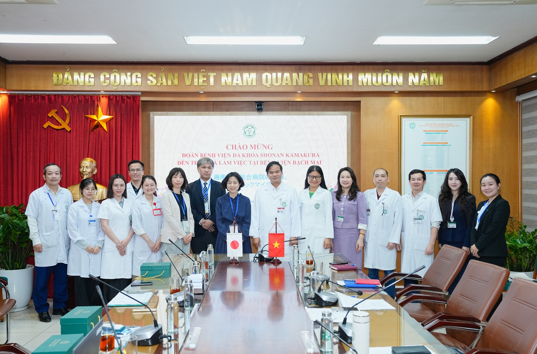 Ngày đăng: 11/03/2026Tác giả: News: Hospital Office / Photos: Department of Social WorkOn the afternoon of March 10, Bach Mai Hospital held a working session with a delegation from Shonan Kamakura General Hospital (Japan) to promote international cooperation in training, research, and technology transfer in oncology, particularly in the field of radiotherapy.