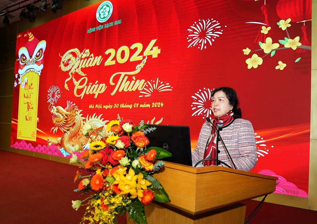 Thay mặt Bệnh viện, PGS.TS Đào Xuân Cơ đã trân trọng gửi lời chúc tết tới các cán bộ hưu trí và gia đình, đồng thời báo cáo với các thế hệ cán bộ những thành quả tốt đẹp trên mọi mặt trong năm 2023 mà Bệnh viện Bạch Mai đã đạt được trong bối cảnh nhiều khó khăn thử thách. Đặc biệt là công tác khám chữa bệnh được chú trọng, nâng cao chất lượng về chuyên môn, tay nghề, triển khai các kỹ thuật mới tiên tiến, cập nhật những tiến bộ y học của thế giới, các hệ thống máy móc trang thiết bị hiện đại để đáp ứng mục tiêu “Vì sức khỏe nhân dân”, hướng tới sự hài lòng người bệnh.
