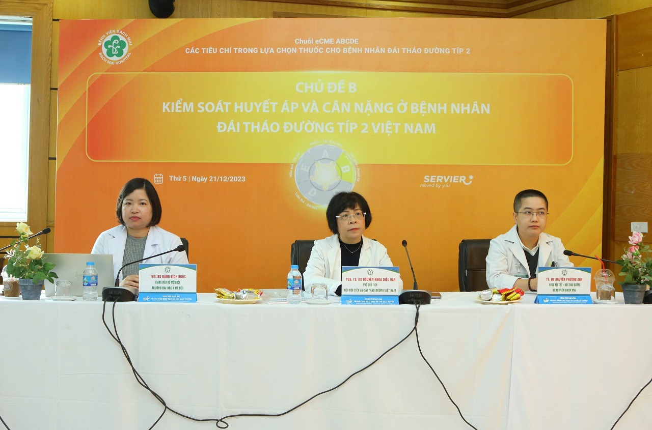 Báo cáo “Cá thể hóa điều trị trên cân nặng của bệnh nhân ĐTĐ típ 2 Việt Nam” của ThS.BS Đặng Bích Ngọc đến từ Bộ môn Nội Trường ĐH Y Hà Nội, Khoa Nội tiết - Đái tháo đường, Bệnh viện Bạch Mai đã đi sâu trình bày mối liên quan giữa béo phì và ĐTĐ típ 2, lợi ích của kiểm soát cân nặng trên bệnh nhân ĐTĐ típ 2 và đi sâu thảo luận một số ca lâm sàng cá thể hóa theo cân nặng bệnh nhân và kết quả điều trị. Từ những phân tích trên, tác giả đã có những nhận định: ĐTĐ típ 2 và béo phì có mối liên quan chặt chẽ, tăng nguy cơ biến chứng và tử vong ở bệnh nhân ĐTĐ típ 2. Kiểm soát tốt cân nặng giúp giảm đường huyết, HA, mỡ máu, giảm nguy cơ biến chứng và tử vong ở bệnh nhân ĐTĐ típ 2. Điều trị béo phì cần cá thể hóa, thay đổi lối sống, chế độ ăn uống, tập luyện là nền tảng, thuốc điều trị được thêm vào tùy bệnh lý đồng mắc, biến chứng ĐTĐ, nguy cơ tim mạch đi kèm.