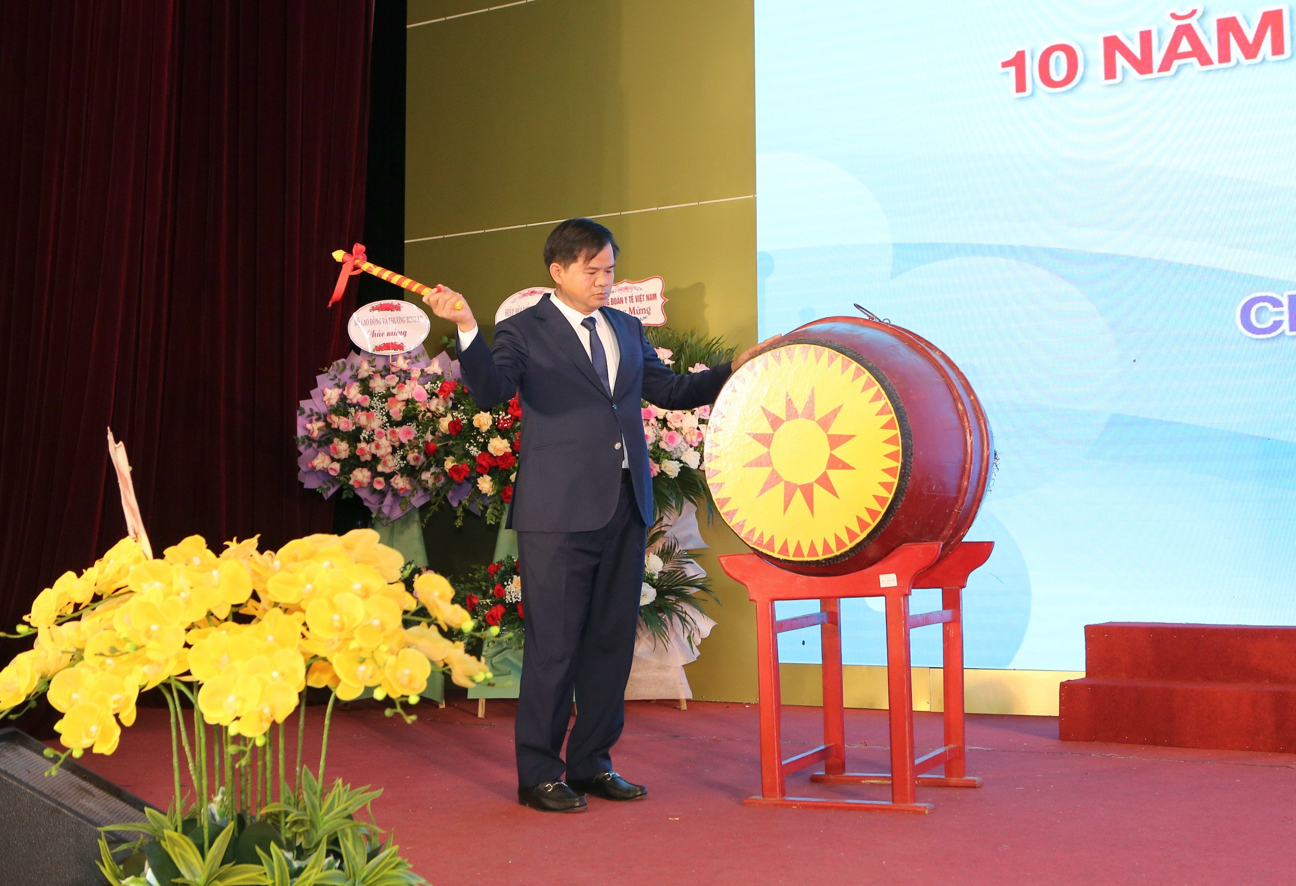 PGS. Đào Xuân Cơ - Bí thư Đảng ủy, Giám đốc Bệnh viện, Hiệu trưởng Nhà trường đánh trống khai giảng năm học 2023 - 2024