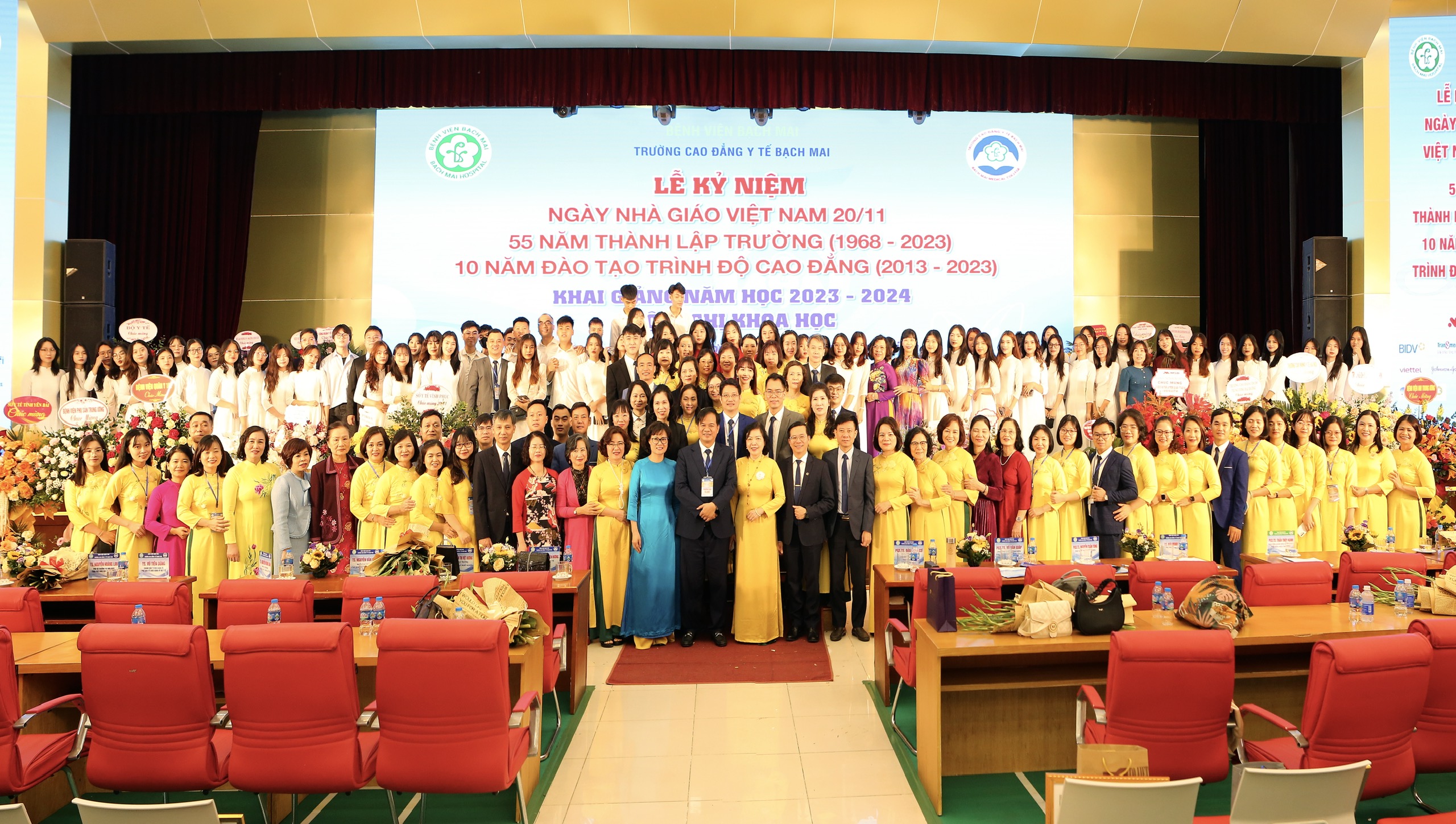 Tập thể các thầy cô và sinh viên Trường Cao đẳng y tế Bạch Mai phấn khởi đón chào năm học mới 2023 - 2024